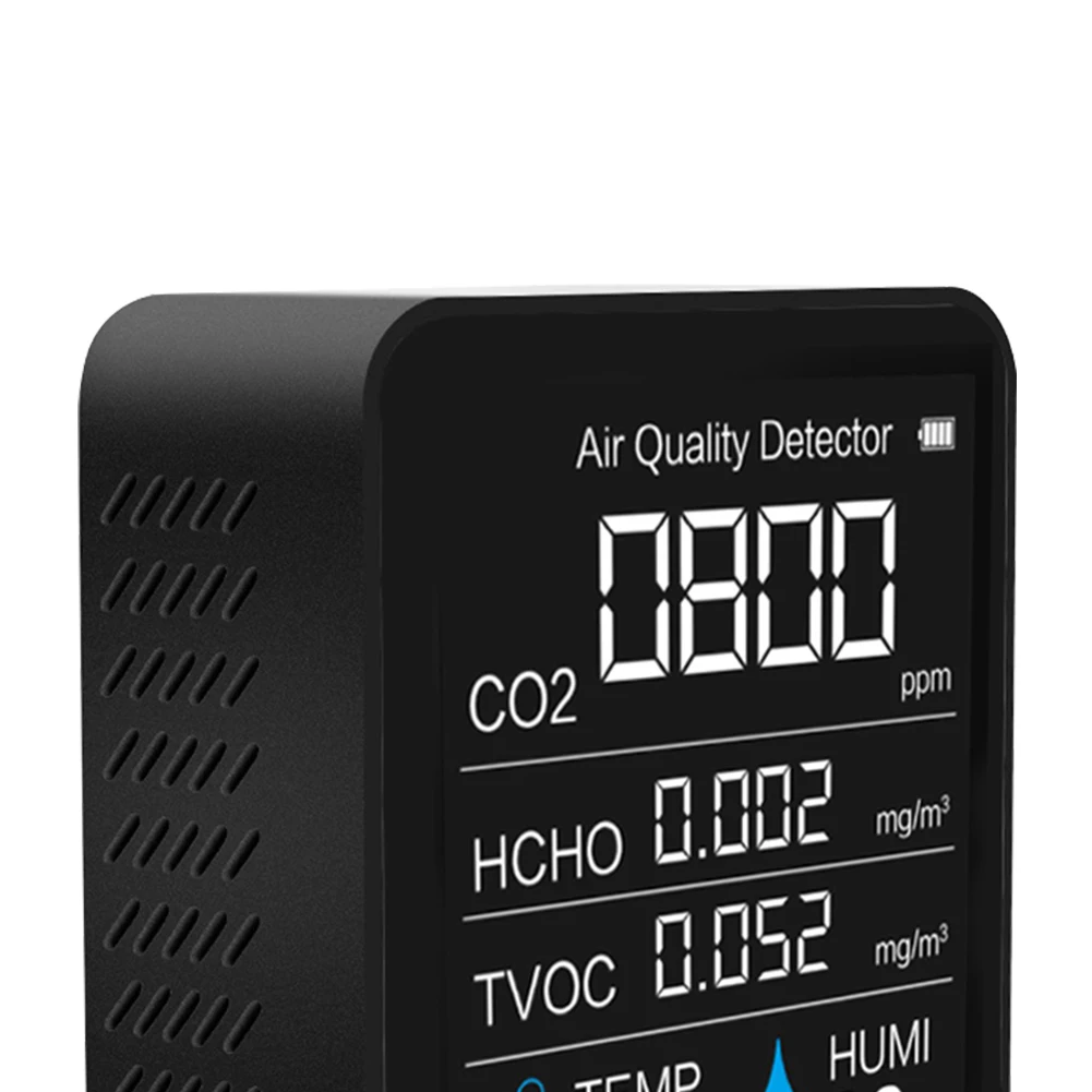 1. Детектор углекислого газа: интеллектуальный тестер значений углекислого газа, газовый анализатор, с использованием полупроводникового датчика TVOC, температуры и влажности воздуха, углекислого воздуха, мониторинга содержания формальдегида и летучих веществ.