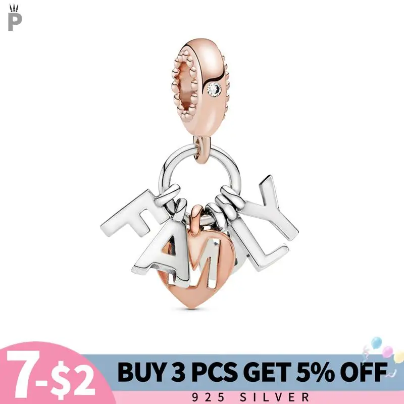 Бусины-подвески из серебра 925 пробы с надписью Family
