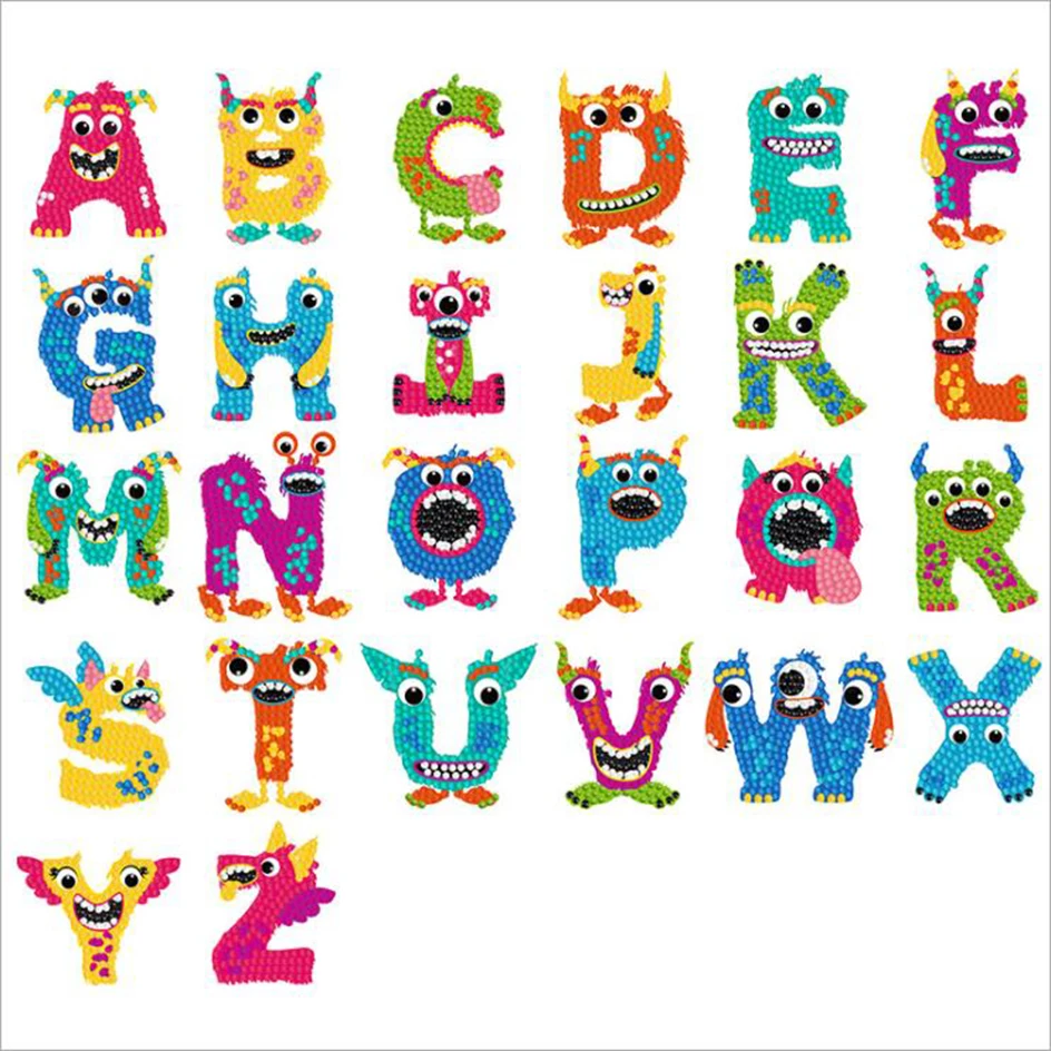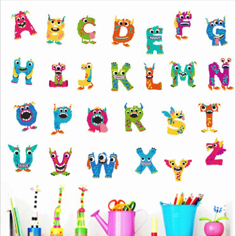 Набор для алмазной живописи, 26 букв, 5D, милая мультяшная Лазерная Русалка, единорог, динозавр, Алмазная наклейка по номерам, детское искусство
