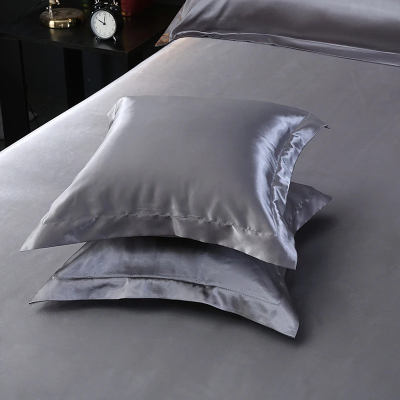 Роскошные атласные шелковые темно-серые наволочки серые белые шелко...