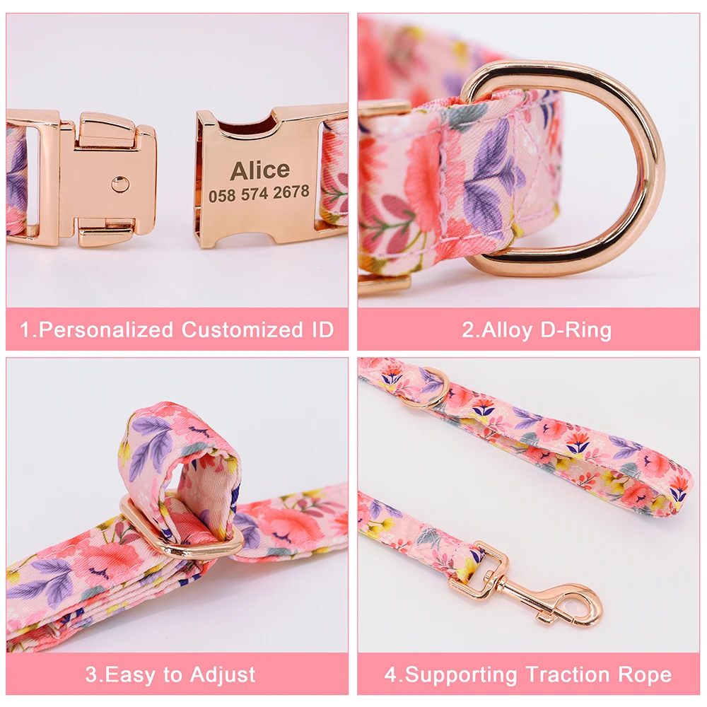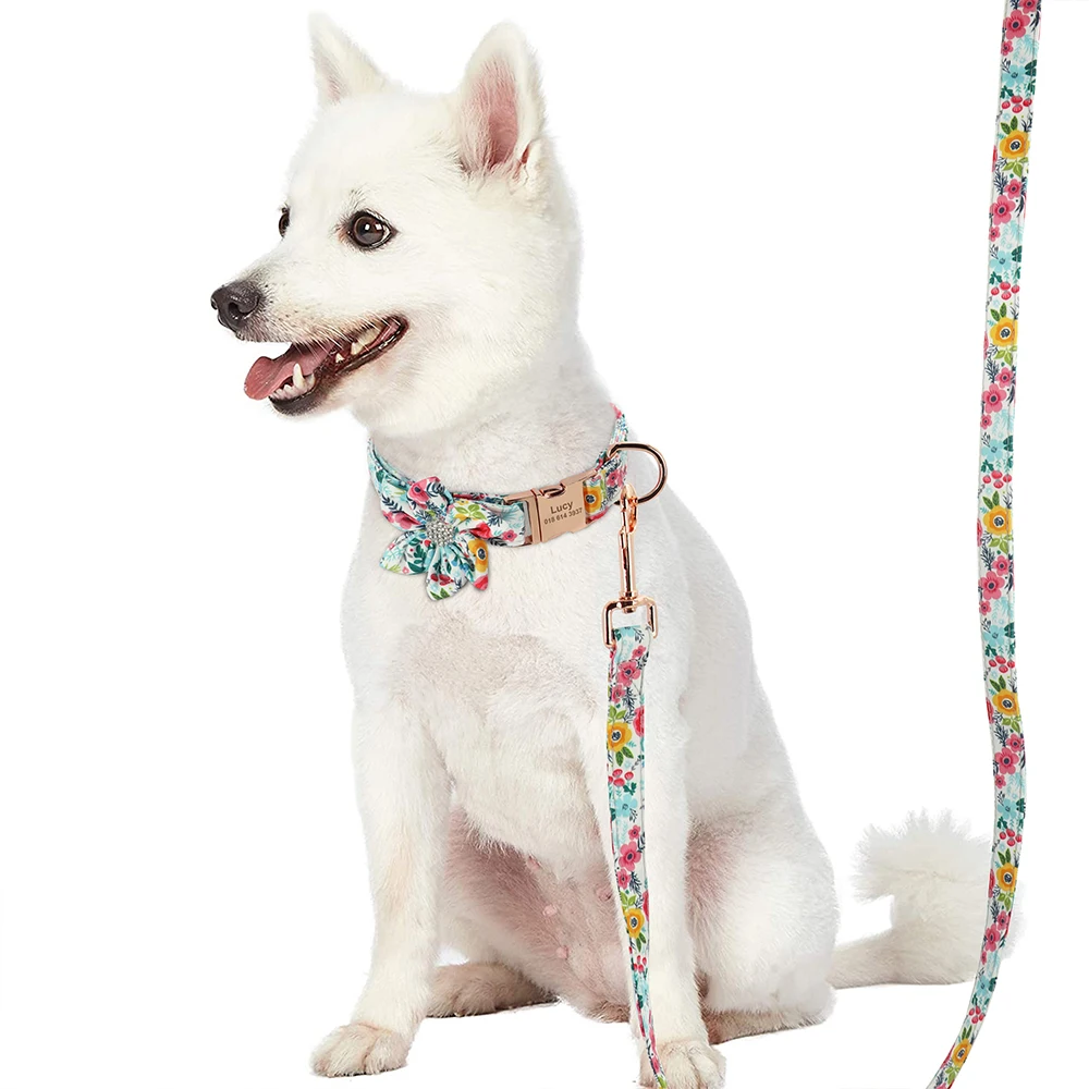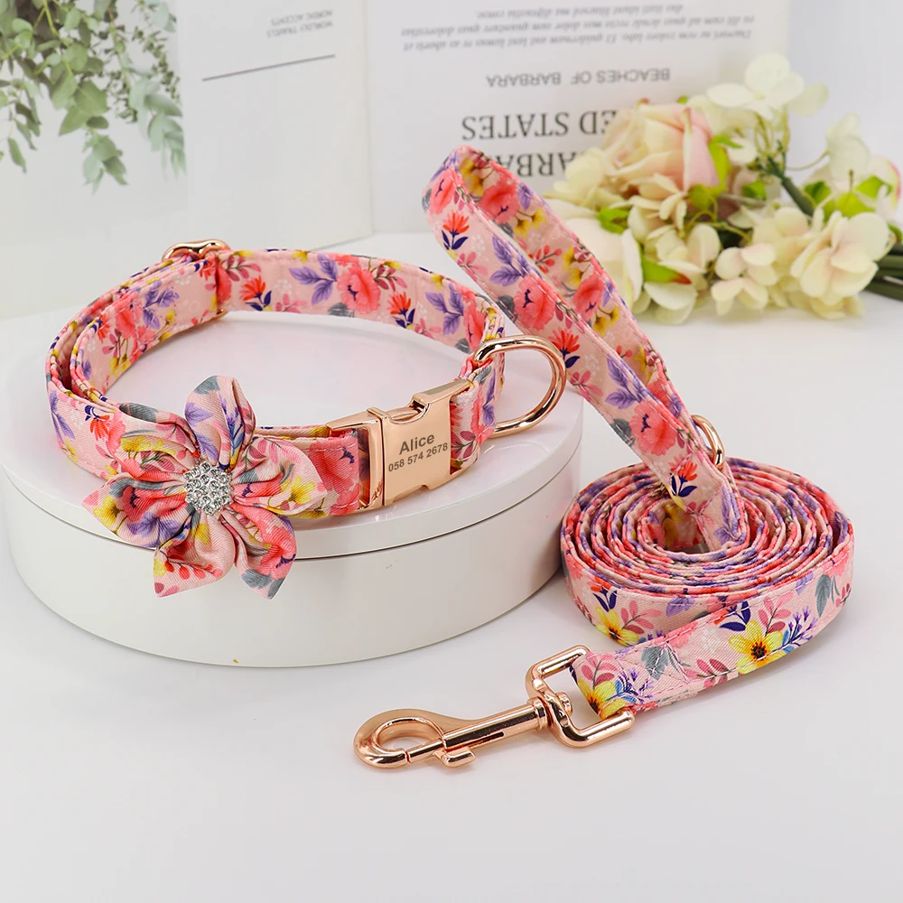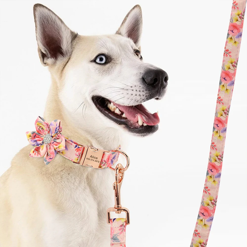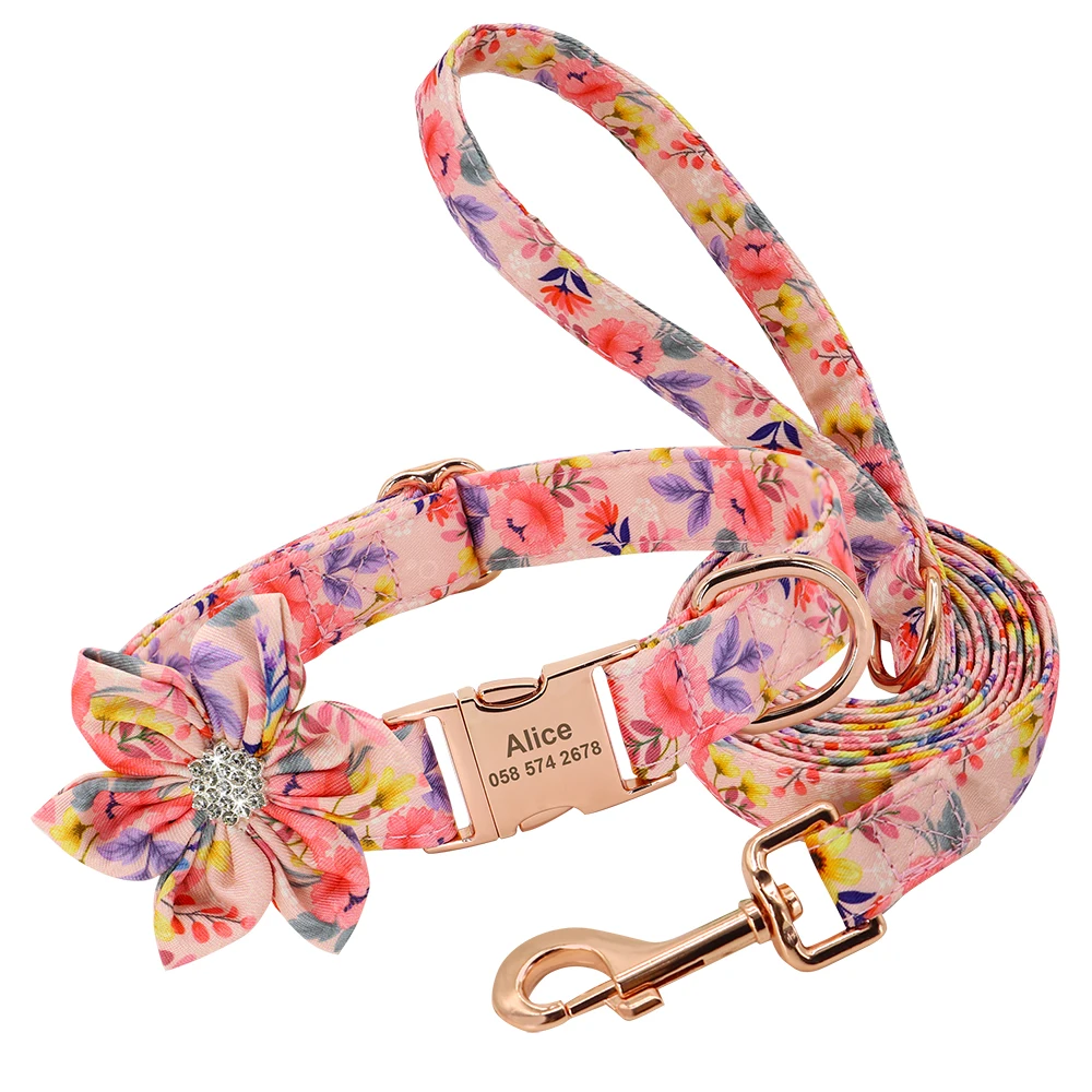 Ошейник Стразы для собак, персонализированный поводок с цветочным принтом, для маленьких, средних и больших питомцев
