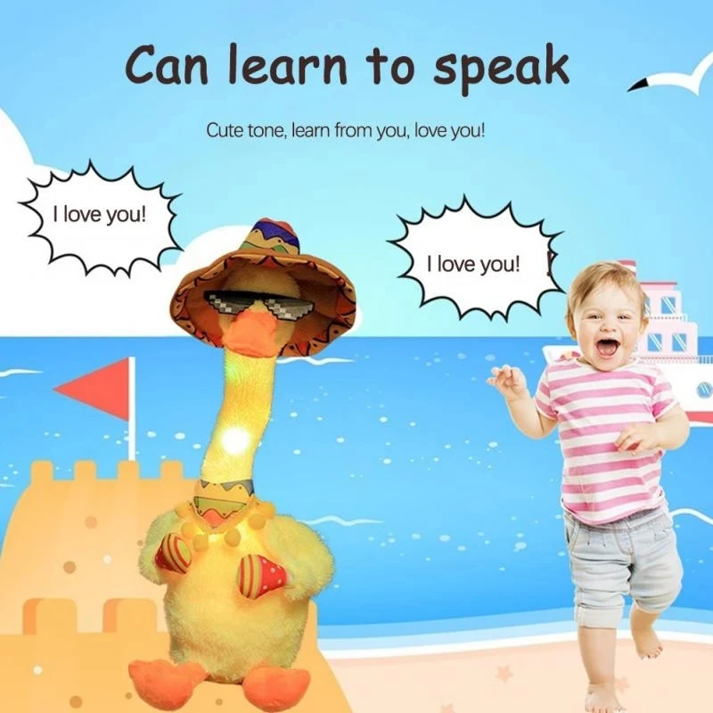 120 музыкальная Мексиканская Танцующая утка, плюшевая игрушка для малышей, обучающая говорящая игрушка светильник легкая переключающаяся утка, электрическая плюшевая кукла, Детская говорящая игрушка