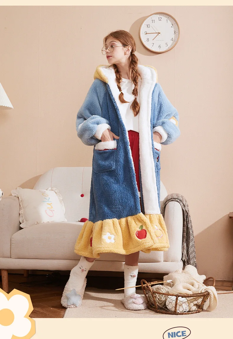 Новые женские халаты зимняя теплая одежда; Коралловый флис; Одежда ...