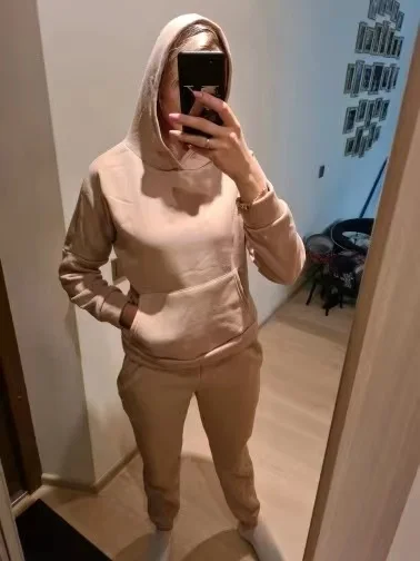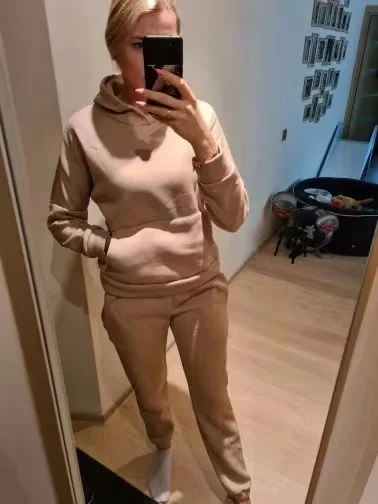 2021 Новые Женские однотонные брюки, костюмы, теплые толстовки с ка...