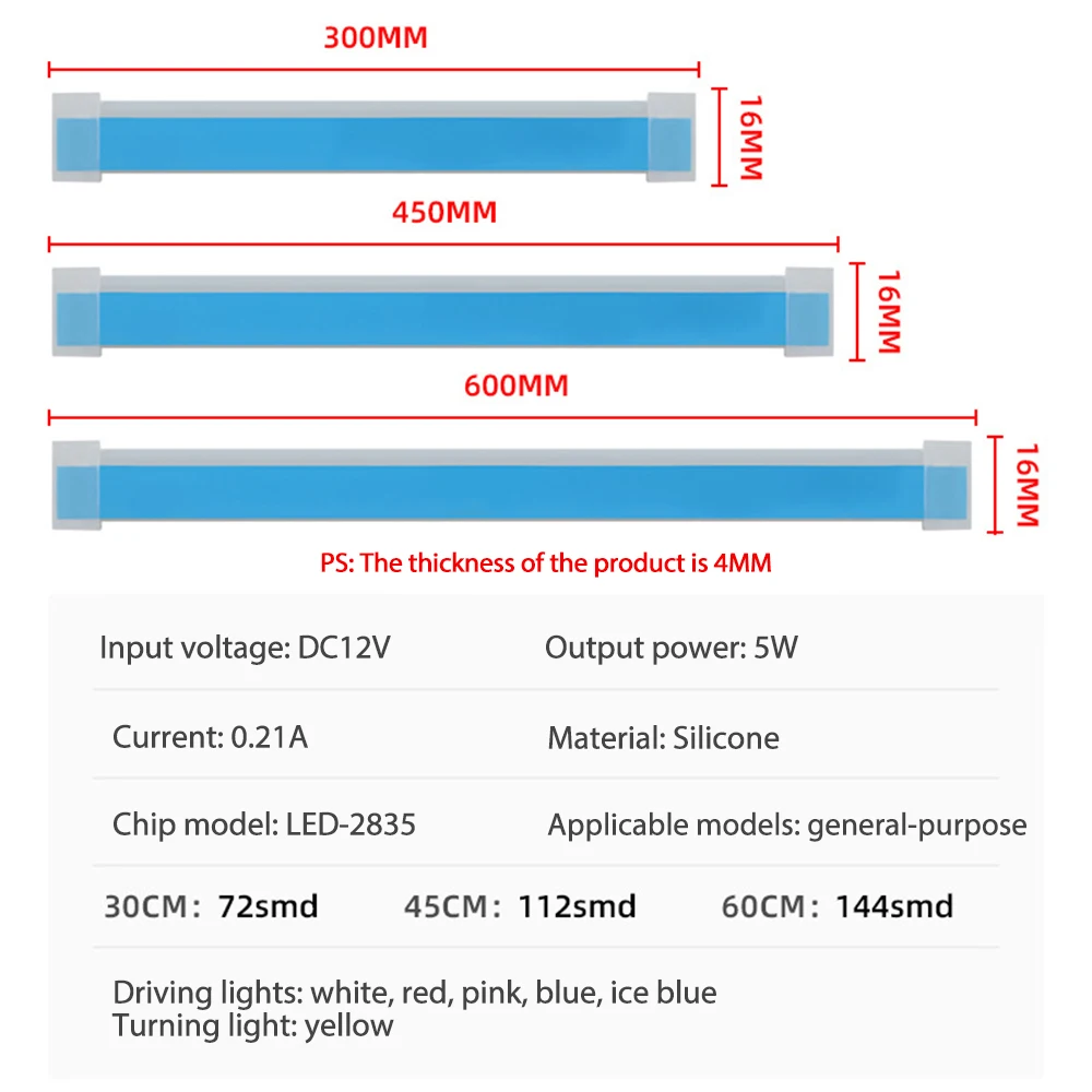 2 светодиодный DRL Автомобильные дневные ходовые огни гибкий водонепроницаемый ремень Автомобильные фары белый сигнал поворота желтый тормоз обтекаемый свет 12 В Название продукта: светодиодный дневные ходовые огни для автомобилей Материал: силикон/светодиодный Входное напряжение: 12 В Применение: подходит для всех автомобилей Характеристики: водонепроницаемый, автомобильный Рабочая температура: -40 ~ 50 градусов Цельсия Толщина лампы: 0,3 см (около 0,12 дюймов) Светильник Размер: 30 см/45 см/60 см/70 см (около 11,81 дюймов/17,72 дюймов/23,62 дюймов 27,55 дюйм (ов) Цвет (вариант покупки): 1. Белый течет в желтый 2. Синий лед течет в желтый 3. Синий течет в желтый 4. Красный течет в желтый Глаза ангела, фары поворачиваются к свету. Красный провод используется для белый светильник, желтый провод используется для желтый светильник, а черный провод используется для отрицательного электрода. (При вождении светильник индикатора белый, а при повороте светильник индикатора постоянно желтый) Установка 1. Наклейте его снаружи фары 2. Проводка: Красная линия: + 12 В/ACC, всегда включается во время вождения Черный провод: -GND/ground (отрицательный источник питания) Желтый провод: подключен к сигналу поворота светильник (+) Купить атрибут: только белый не нужно соединять желтую линию, только красный и черный две линии Упаковочный лист