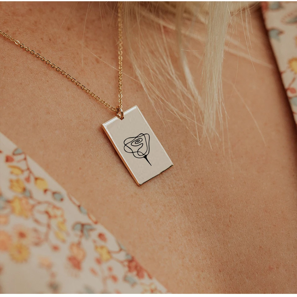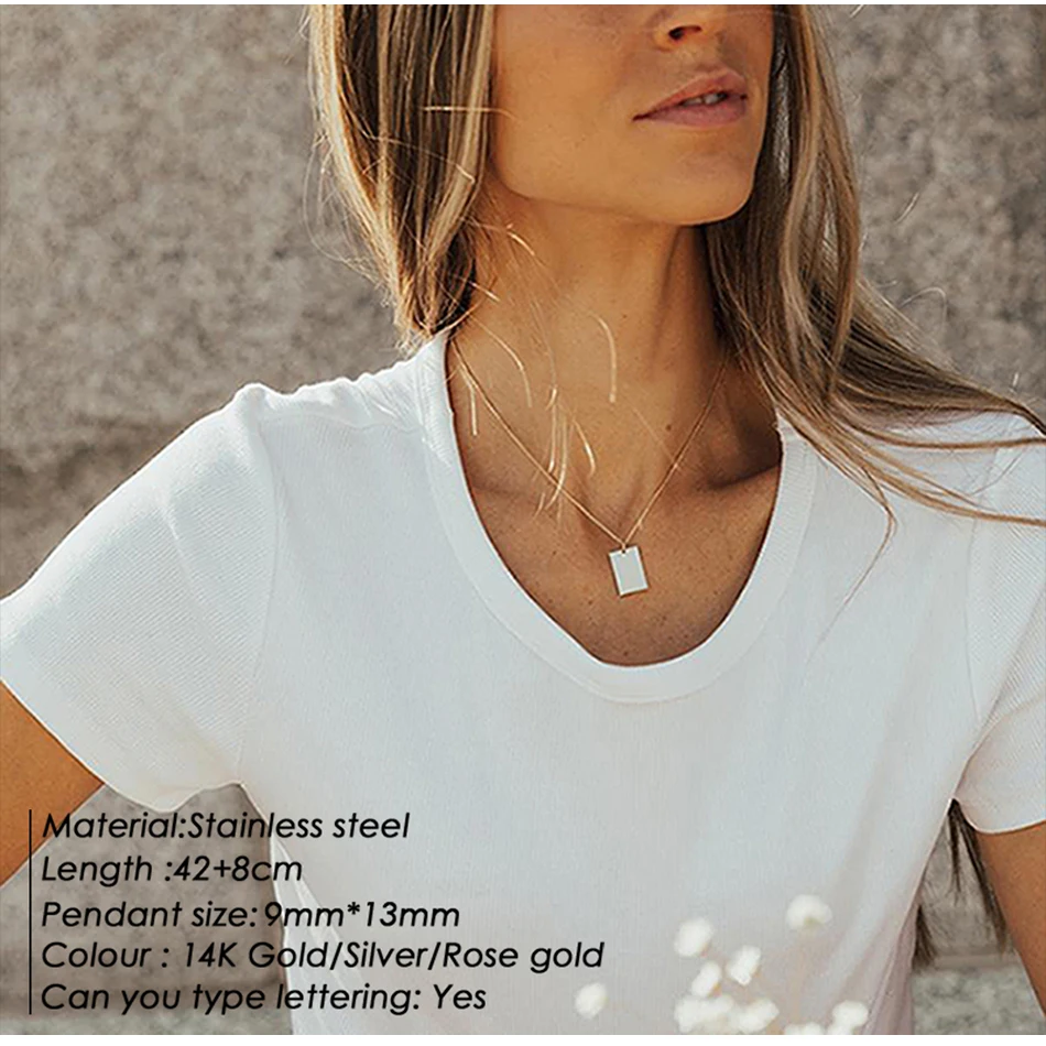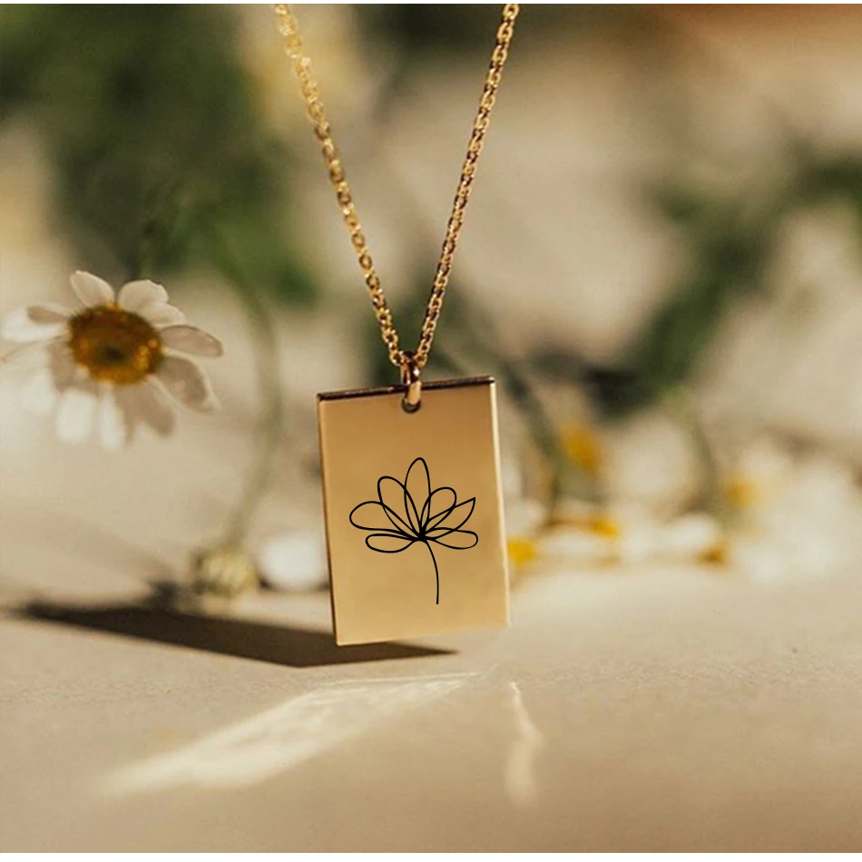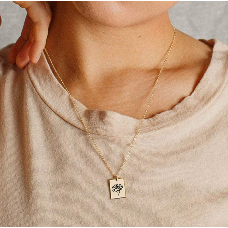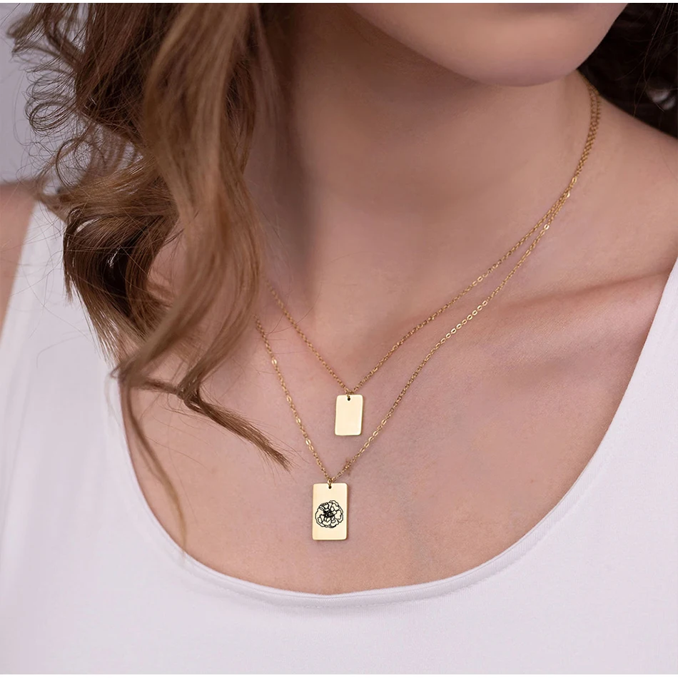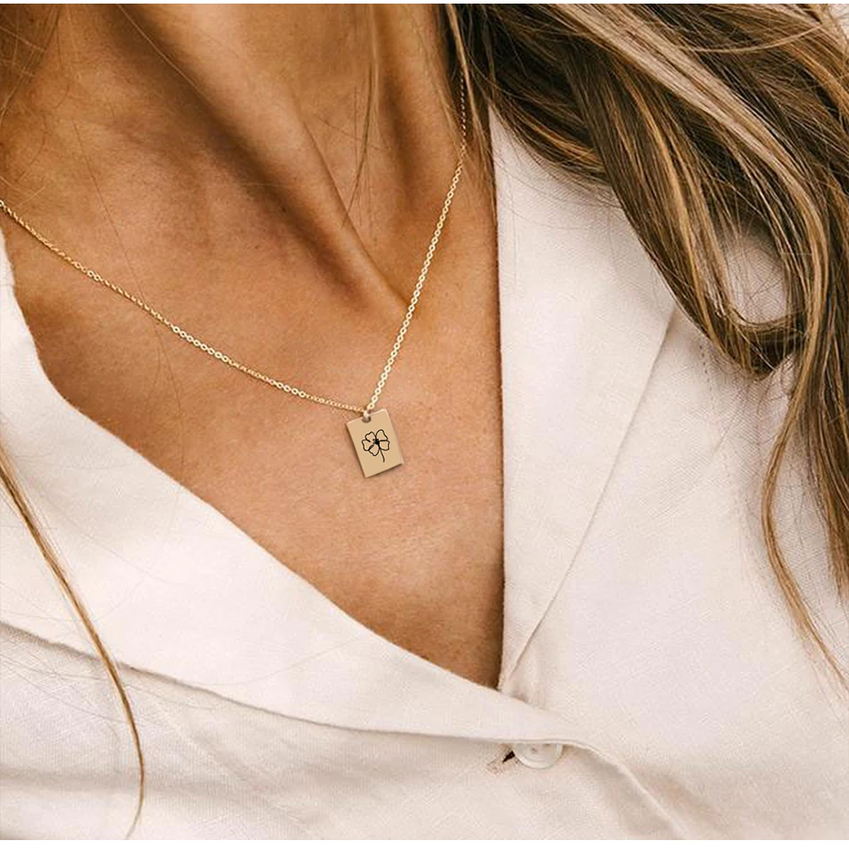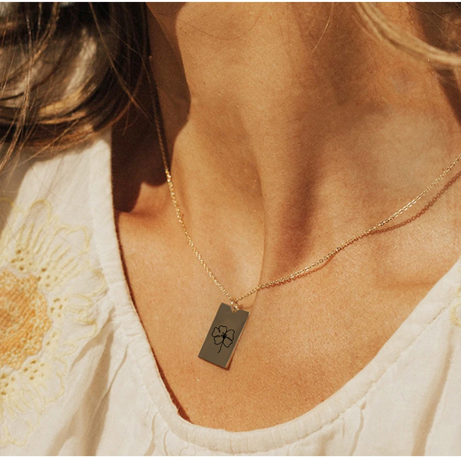 EManco гравировка клевера цветок лотоса серьезное ожерелье из нержавеющей стали прямоугольная подвеска персонализированный чокер воротник женские ювелирные изделия