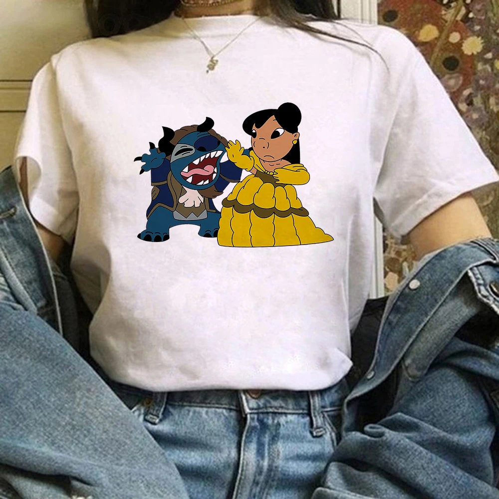 Футболка женская с круглым вырезом, стильная модная рубашка в стиле Харадзюку, для косплея, для Хэллоуина, Disney Kawaii Stitch