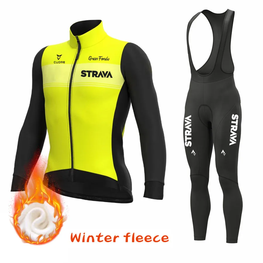 Трикотажный комплект для велоспорта STRAVA 2022, зимняя флисовая го...