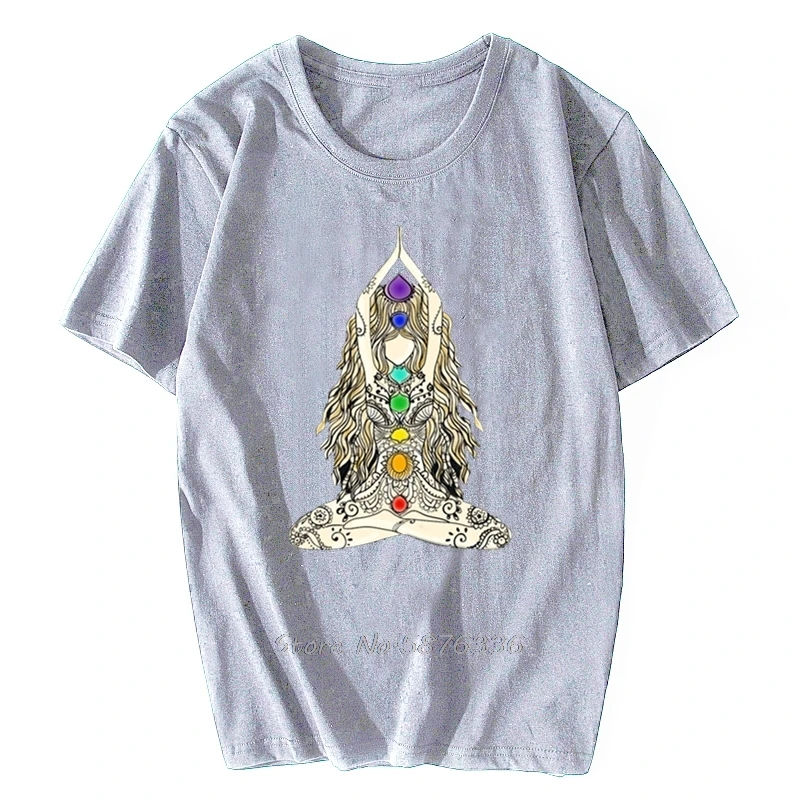 Футболка женская Весенняя с принтом йоги, чакры, медитации, загара, мандалы, юмора