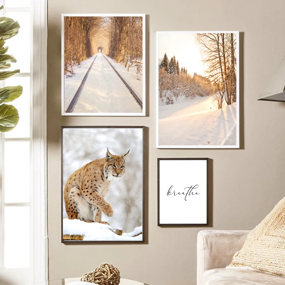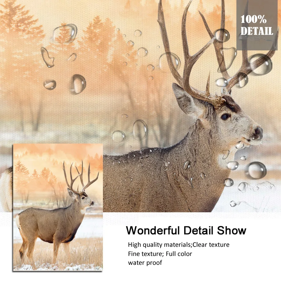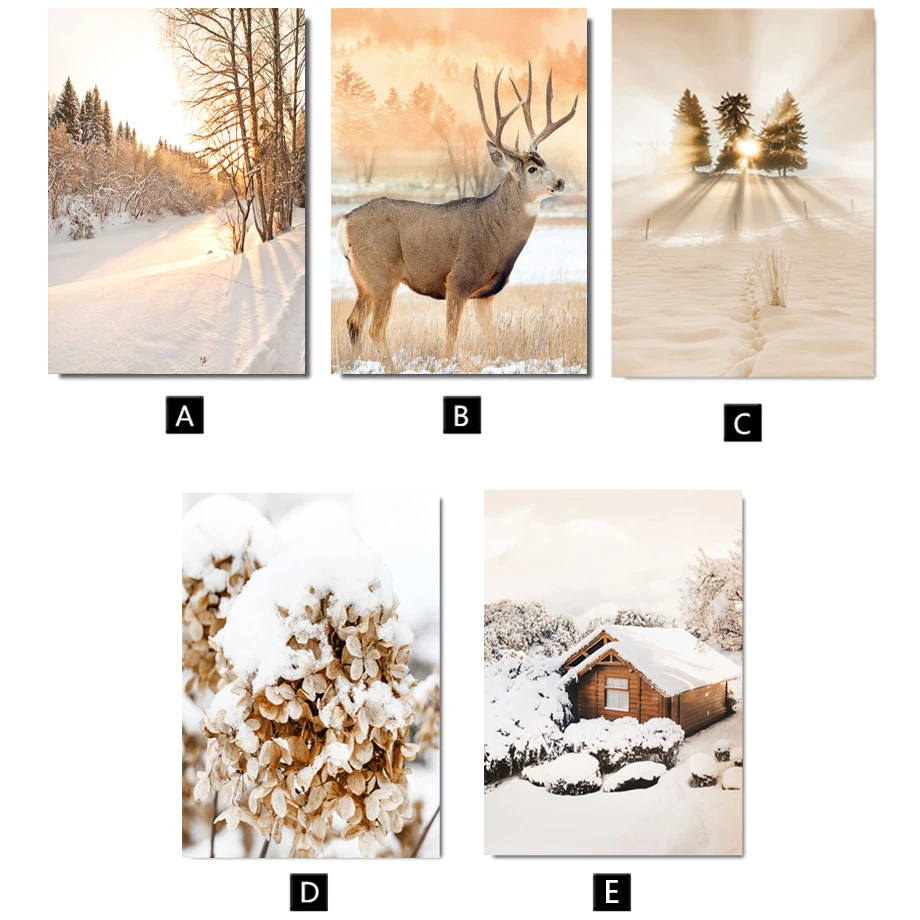 Зимний снег сцена лес Одуванчик Каньон река олень скандинавский стиль настенная живопись холст постеры и принты Декор для гостиной
