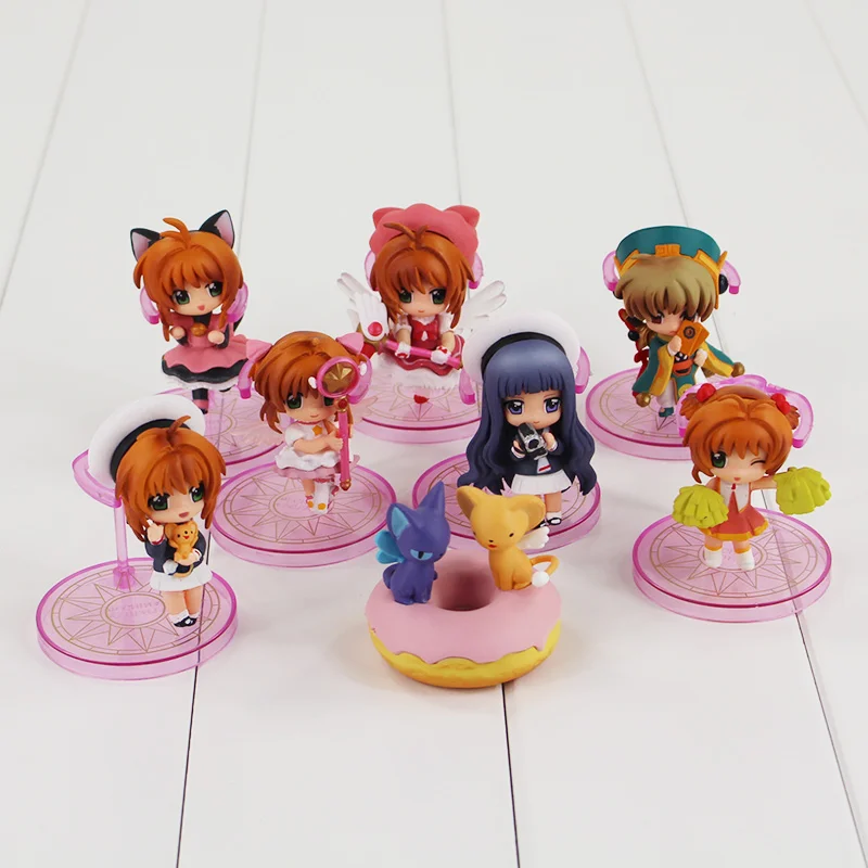 Мини-брелки из ПВХ с фигурками персонажей аниме 8 шт.лот, игрушки Сакура, брелки Kinomoto Sakura Daidouji Tomoyo Li Syaoran Kero