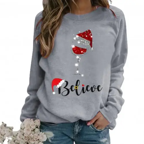 Женский пуловер с длинным рукавом, с рождественским принтом, Свобод...