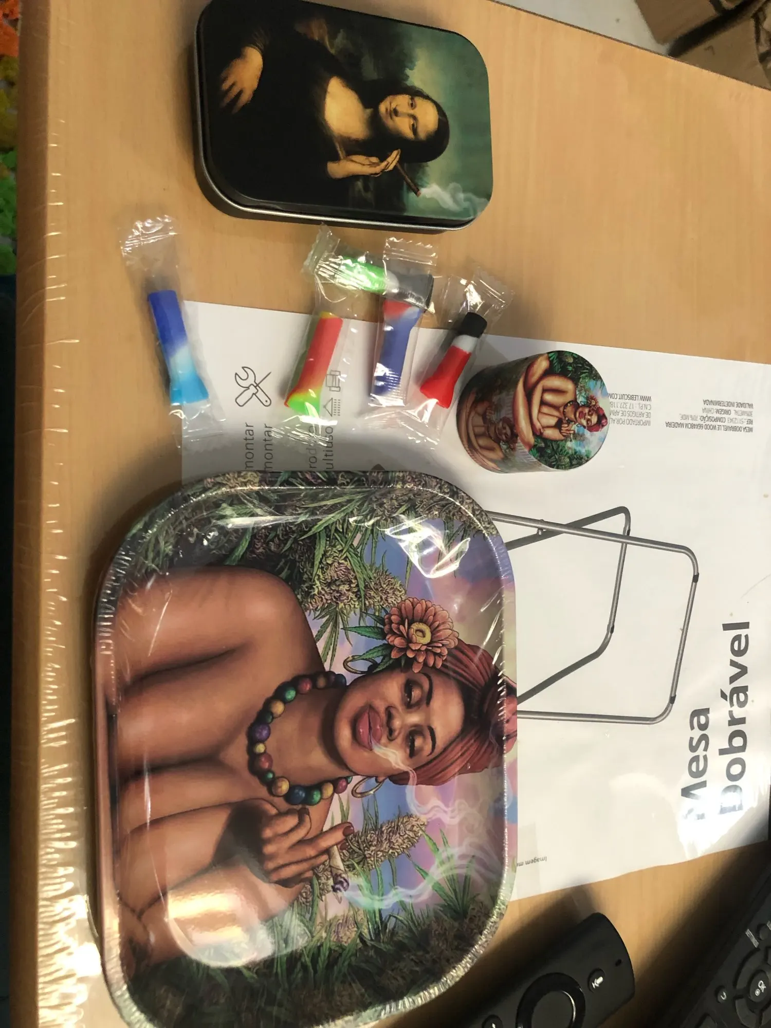 Творческий Мона Лиза курение сигары сигареты жестяной коробке табак...