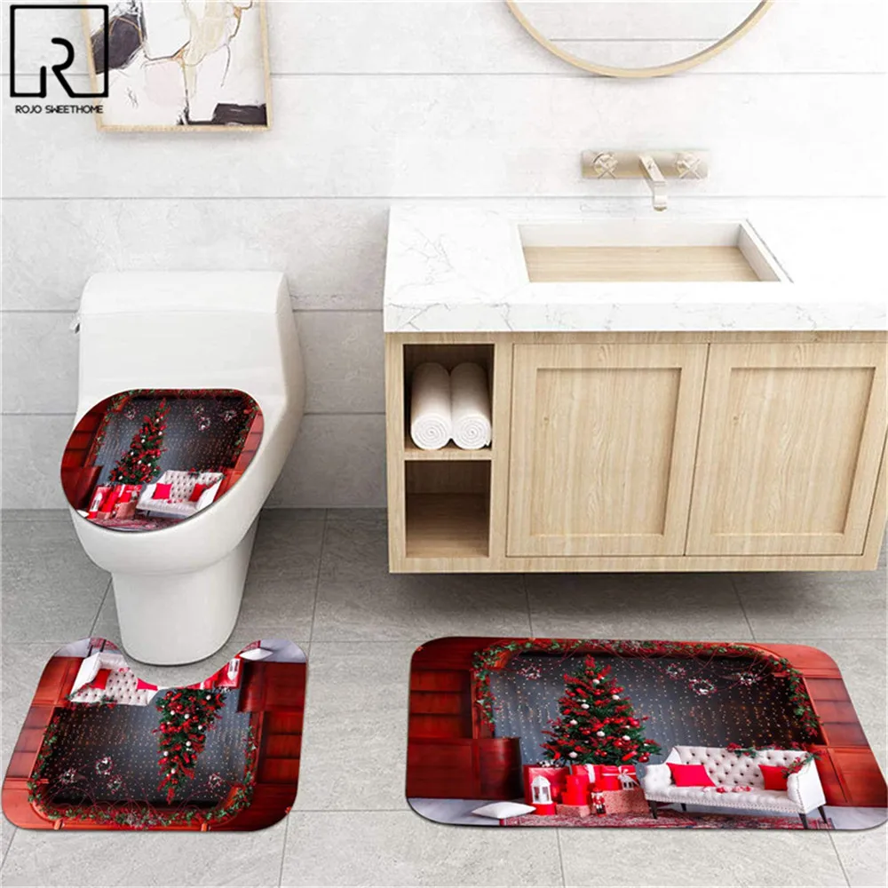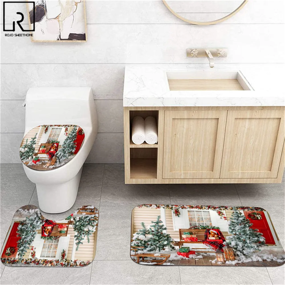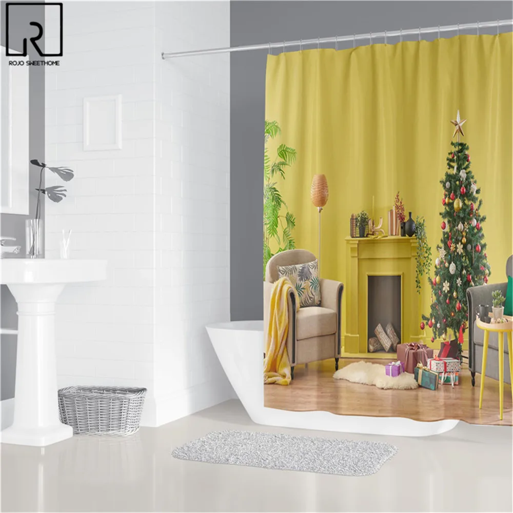 Рождественские занавески для ванной комнаты, занавеска для окна рождественской елки, занавеска для душа из полиэстера, крышка для унитаза, набор ковриков для ванной, праздничное украшение для дома