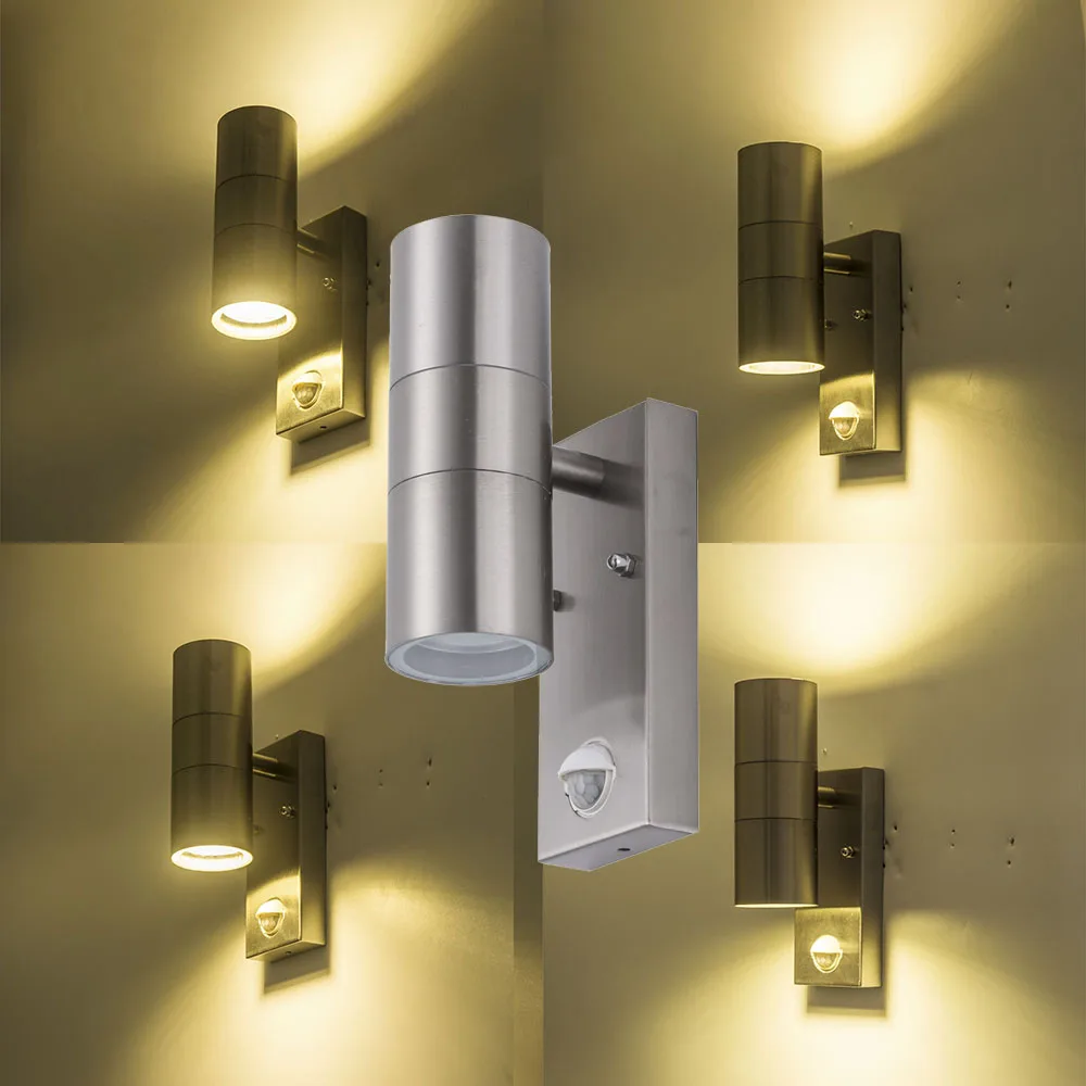Серебряный светодиодный настенный светильник с датчиком движения, соответствует стандартам, водонепроницаемый наружный настенный светильник из нержавеющей стали PIR, новый дизайн