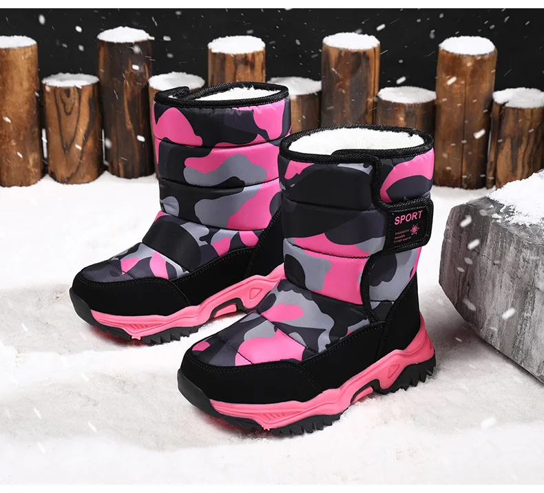 Детские зимние ботинки из флока камуфляжного цвета для мальчиков и ...