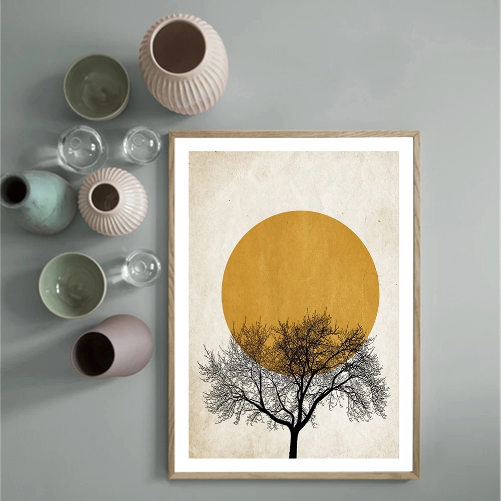Настенный плакат с скандинавской тематикой зимнее утро солнце дерево настенная Картина на холсте простые плакаты и принты Декор для спальни современный домашний декор