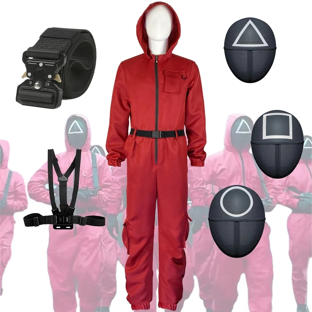 Корейский костюм для телеплея, игра кальмар, одинаковая маска, костюм из игры кальмар, красный комбинезон, костюм, жакет, костюм для Хэллоуина, косплея, костюм для вечеринки