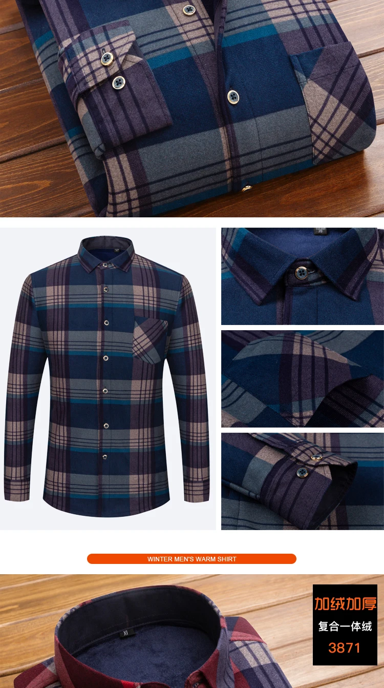 Осенне-зимняя плотная бархатная Классическая рубашка для мужчин, Повседневная теплая флисовая подкладка с длинным рукавом, модные мягкие фланелевые фоторубашки размером 4XL