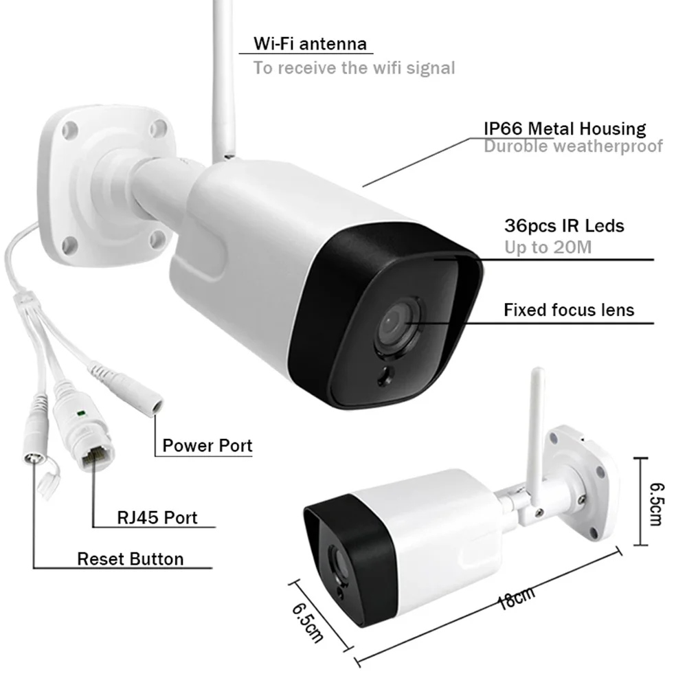 ① Эта камера включает адаптер питания.② Поддержка удаленного доступа P2P с помощью бесплатного приложения и программного обеспечения для ПК.③ Поддержка обнаружения движения человека (требуется личный протокол при использовании NVR).④ Отправка оповещений на электронную почту или Оповещение на ftp-сервер.⑤ Поддержка различных сетевых протоколов: RTSP, Onvif 2,1, i13, HTTP, DDNS, DHCP и т. д.⑥ Мы принимаем изготовление на заказ: логотип, этикетка, функция, тип и т. д.