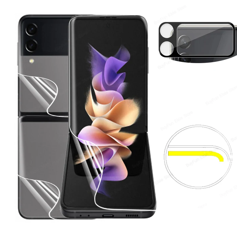 3-в-1 объектив камеры протектор для Samsung Z Flip3 5G гидрогель пленки для Galaxy Z Flip 3 5G экран задняя защитная пленка не стекло