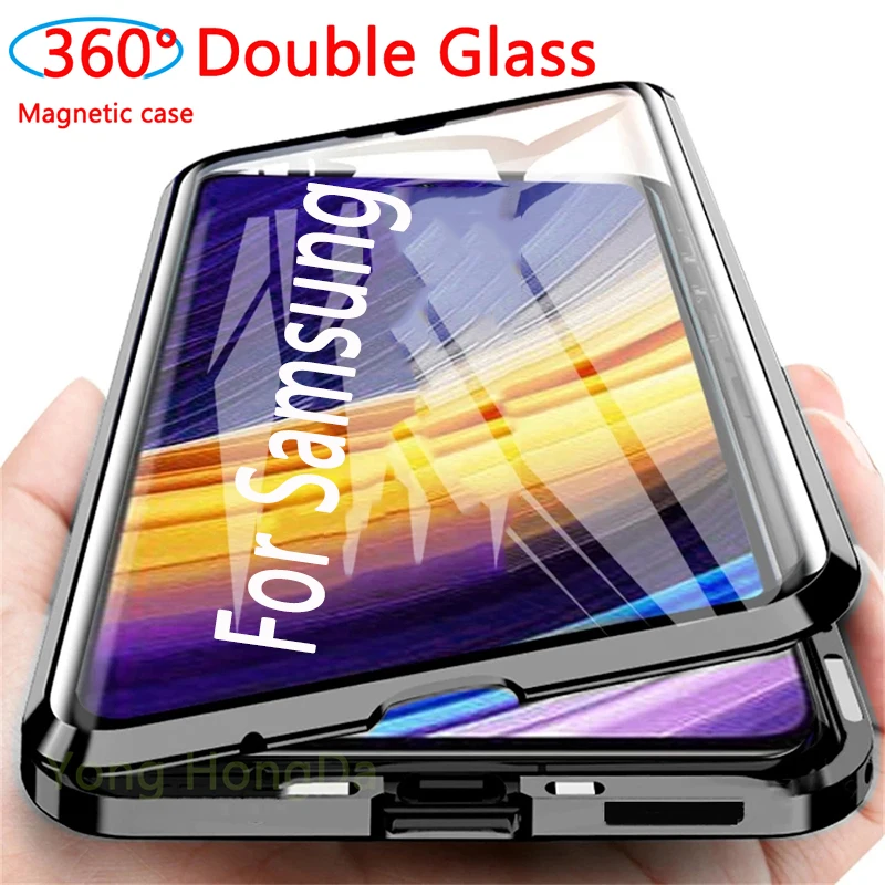 Двухсторонний стеклянный чехол с полной защитой на 360 для Samsung S10 S20 S21 FE S9 S8 Note 20 10 9 8 Plus Ultra A51 A71, Магнитный чехол