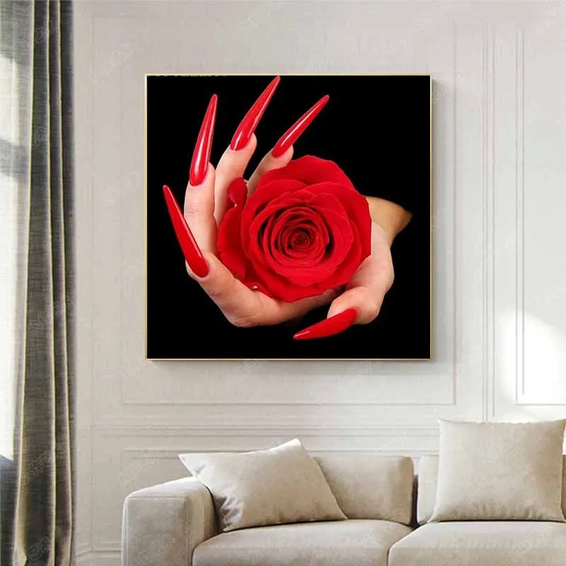 Алмазная 5d-картина цветы, Красная роза в руке, вышивка цветами, красными розами, строительные цветы, красная роза