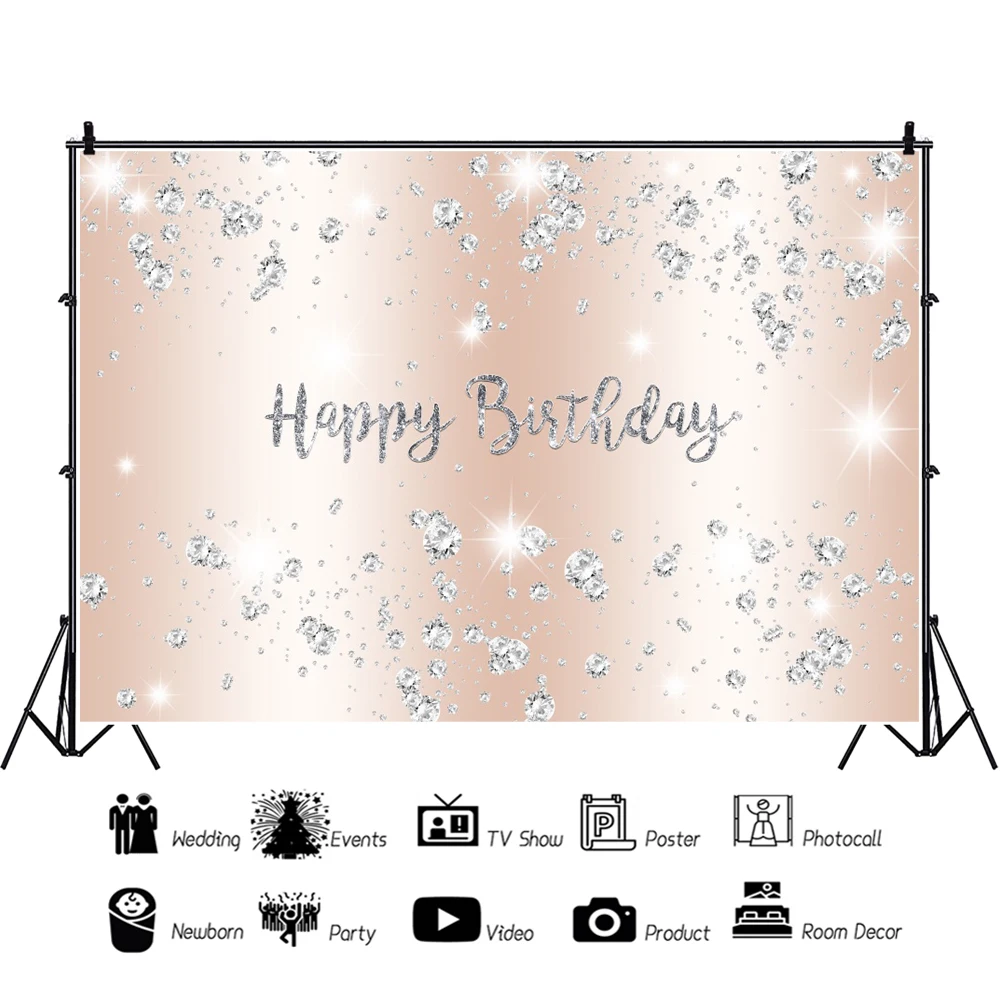 Блестящие бриллианты серебро День Рождения Вечеринка индивидуальный баннер плакат ребенок фотозона фото фон розовый фото фоны