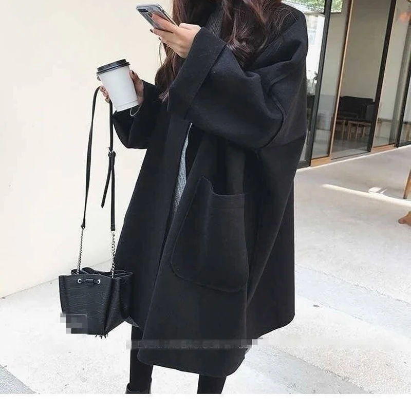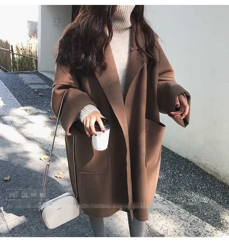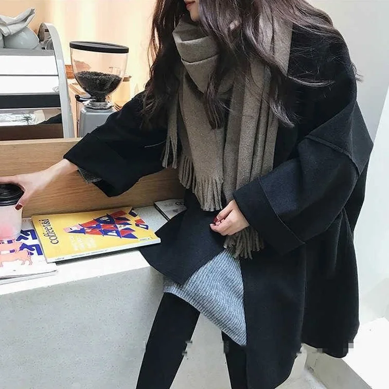 Женское длинное кашемировое пальто, свободное кашемировое пальто из искусственной шерсти, верхняя одежда в Корейском стиле на осень и зиму, 2021