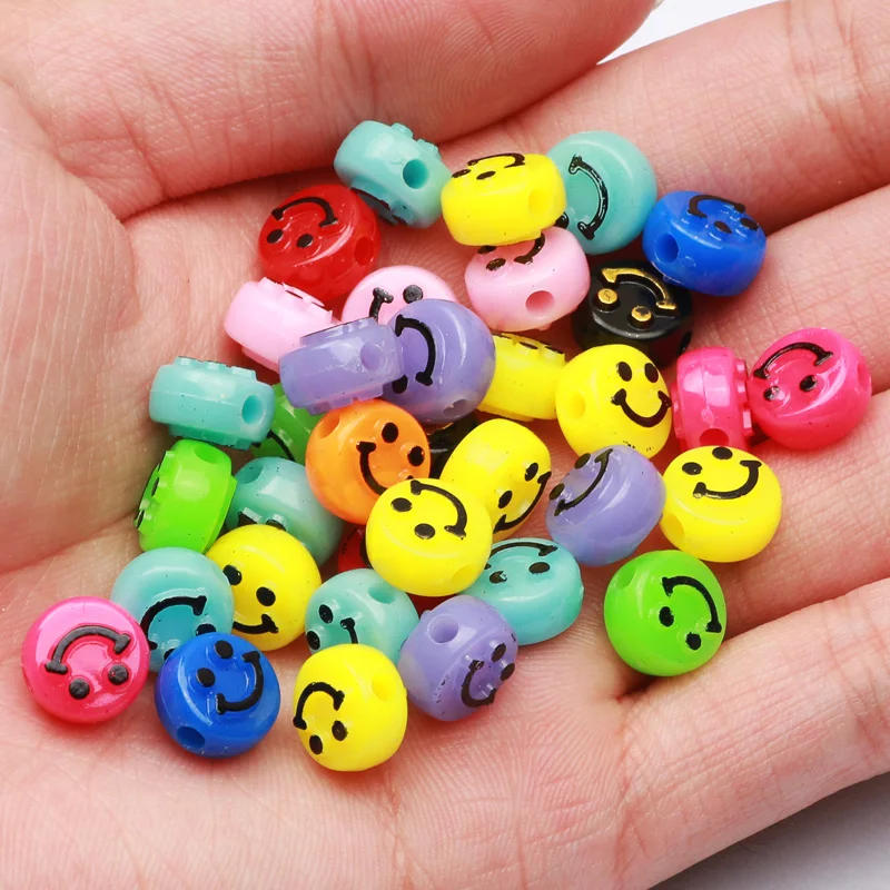 Смешанные акриловые бусины с улыбкой 4*7 мм, круглые плоские бусины...