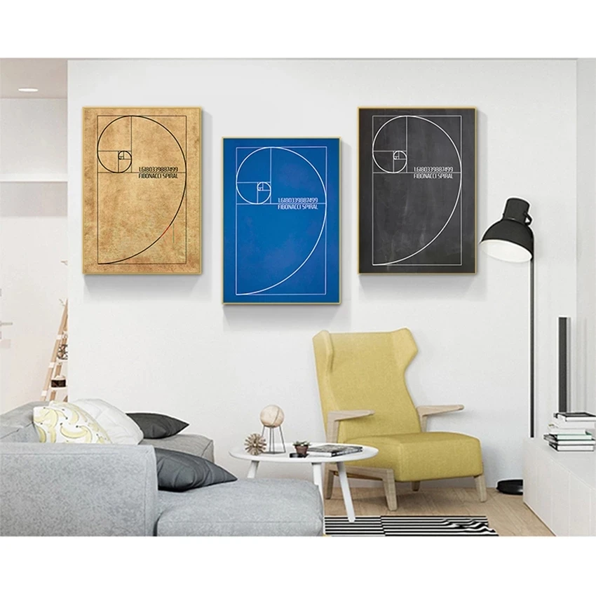 Винтажный дизайн, идея, научная математика, украшение спираль финабоччи, запатентованная настенная Картина на холсте, Золотое соотношение, домашний декор