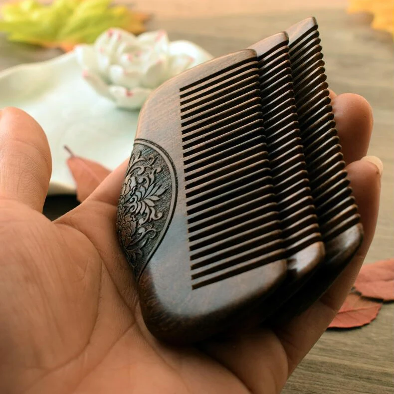 Карманная деревянная расческа из натурального черного сандалового дерева, супер узкие деревянные расчески с зубцами, не статическая Расческа для вшей и бороды, Стайлинг волос