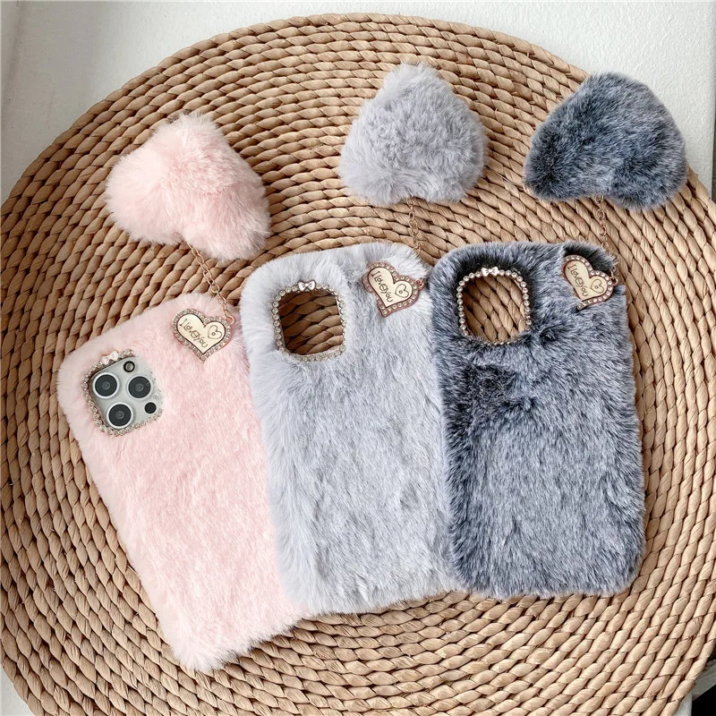 Плюшевые меховые Мягкие силиконовые подвесные чехлы для телефонов H...
