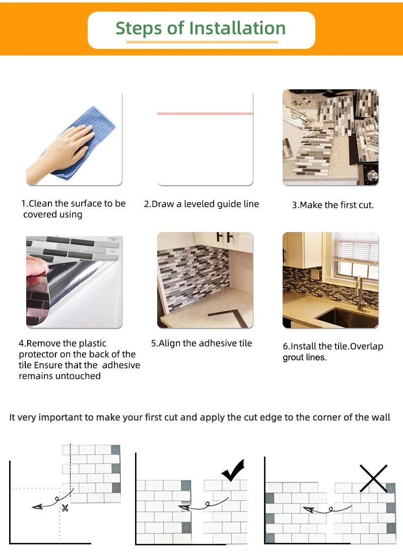 Руководство по заказу: Шаг 1: Определите, подходит ли стена для этой наклейки на стену (подробнее ниже);Шаг 2: рассчитать площадь квадрата и узнать, сколько нужно наклеек на стену (подробнее ниже);Шаг 3: мастер общих шагов резки и наклеивания настенных наклеек (подробнее ниже). *Есть три варианта количества «10 штук», «15 штук» и «20 штук». Пожалуйста, купите достаточное количество за разЧтобы избежать разницы в цвете в разных партиях, вы не испытываете проблем.* Из-за таких факторов, как экраны дисплея, другой светильник и угол, будет s светильник разница в цвете между фактическим продуктом и картинкой. Пожалуйста, убедитесь, что вы не возражаете перед покупкой.