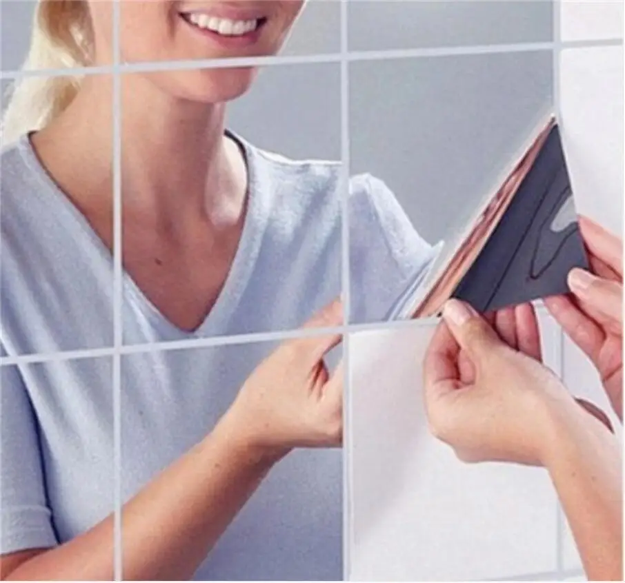Зеркальная Наклейка на стену, 816 шт., квадратная стеклянная наклейка, стикер для настенной плитки, самоклеящаяся акриловая плитка, наклейка для ванной комнаты, 3D Наклейка на стену