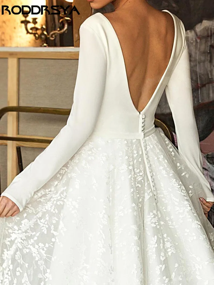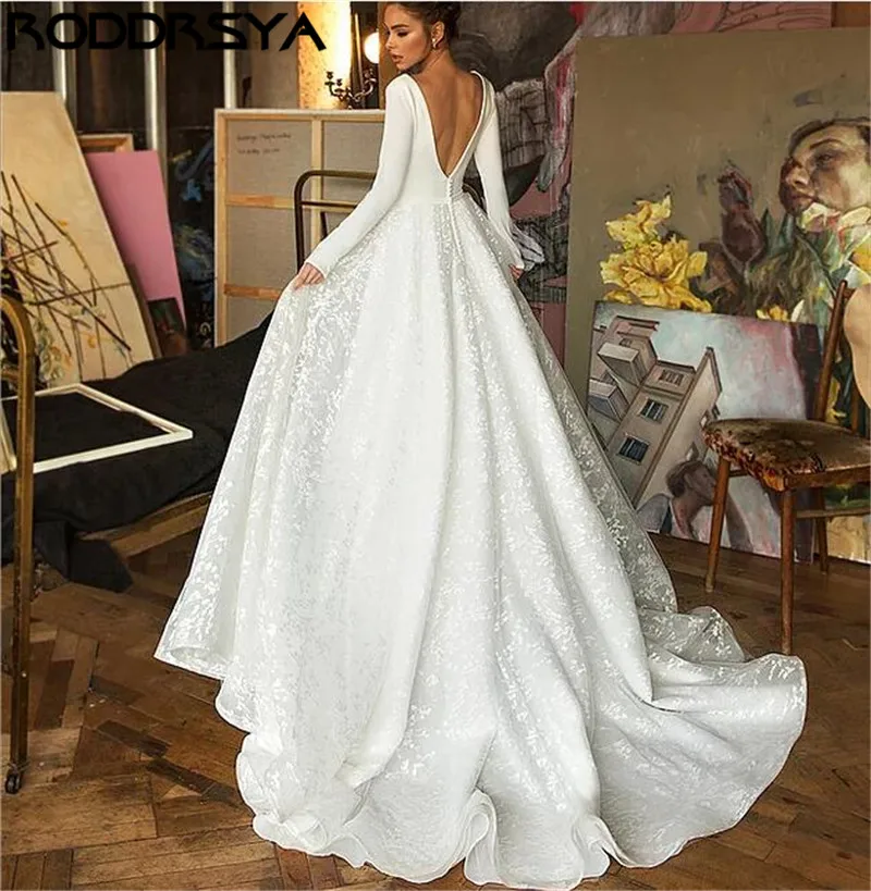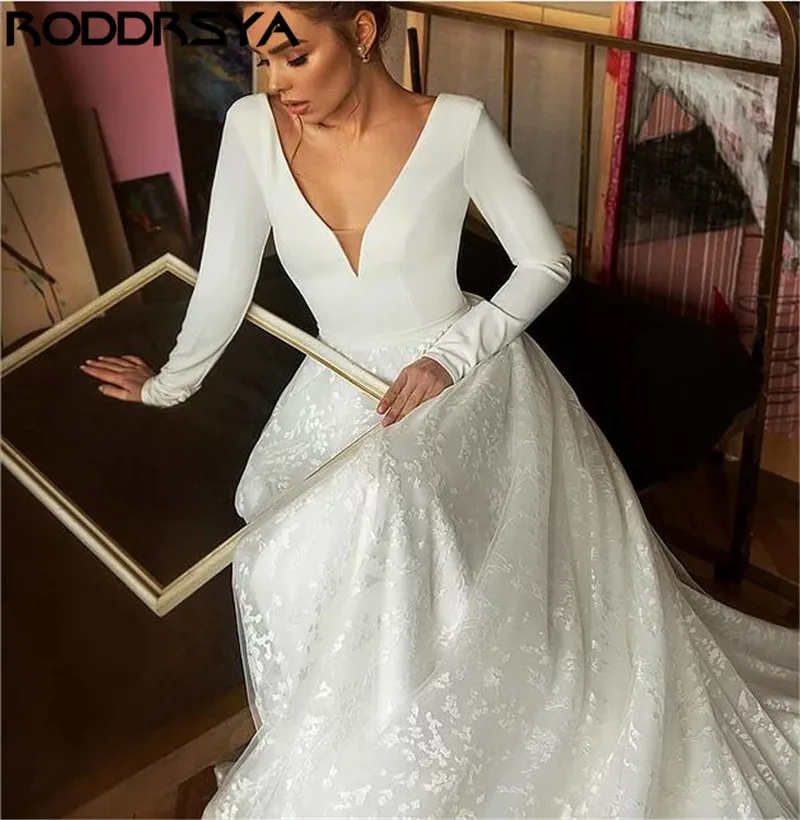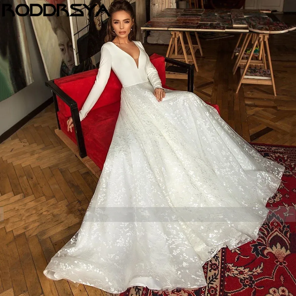 RODDRSYA кружевные свадебные платья с длинным рукавом и V-образным вырезом