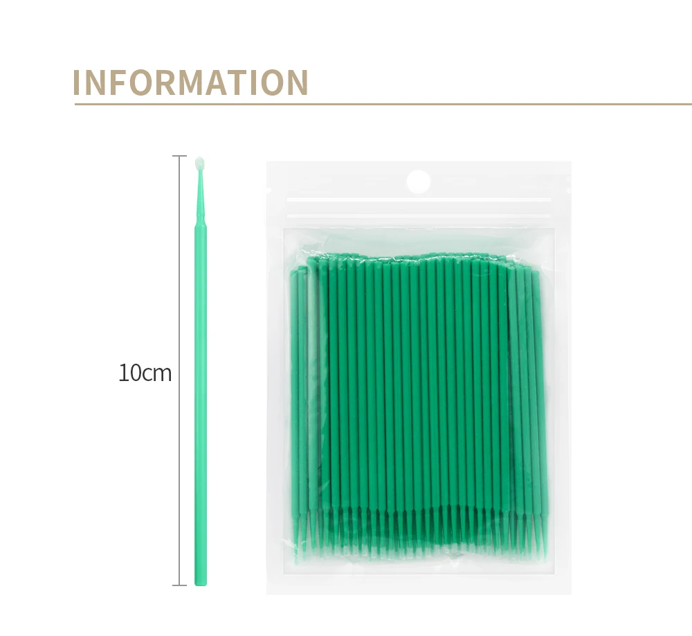 Щёточки для наращивания ресниц MicroBrush, одноразовые щёточки для наращивания ресниц, щётки для коррекции ресниц Micro Brush, палочка для снятия ресниц, 100 штуп.