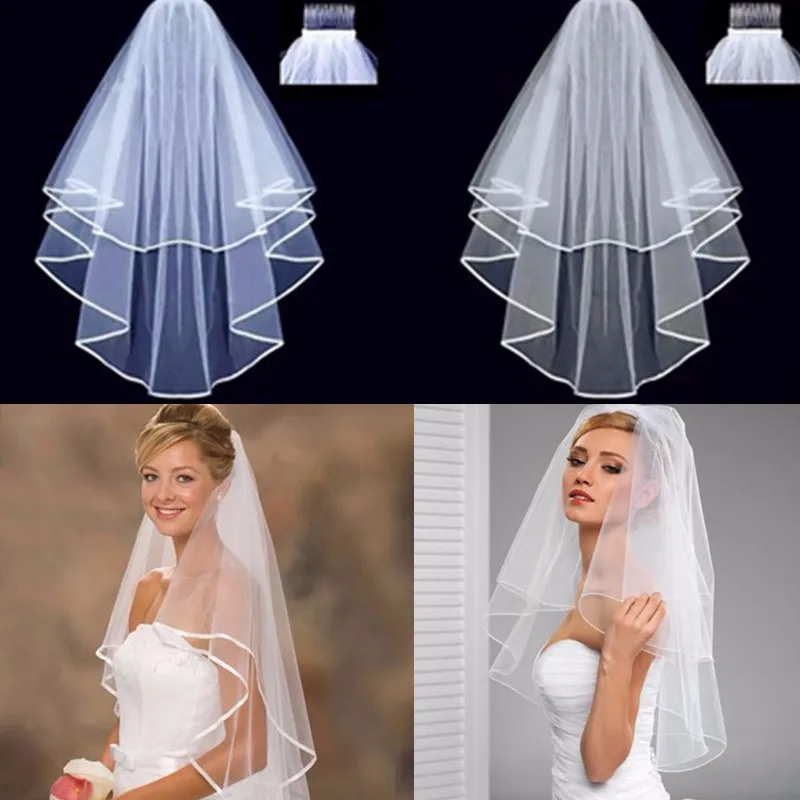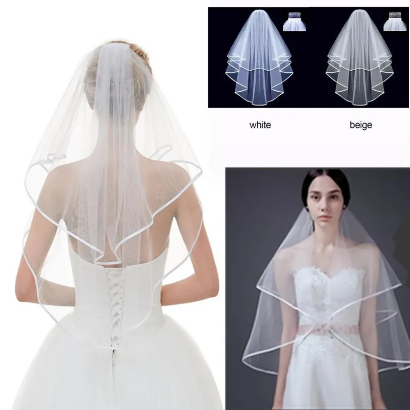 Новый модный стиль 0,8 м Короткая секция красивая и просторная двухслойная белая или бежевая Фата для свадебвечерние НКИ с расческой