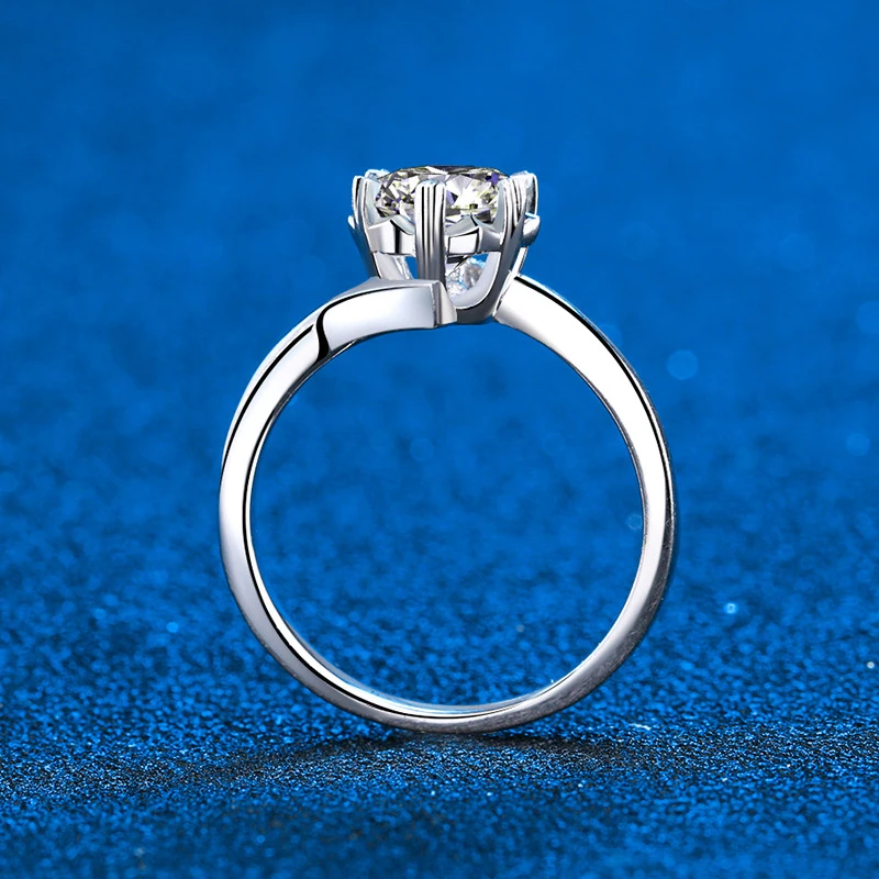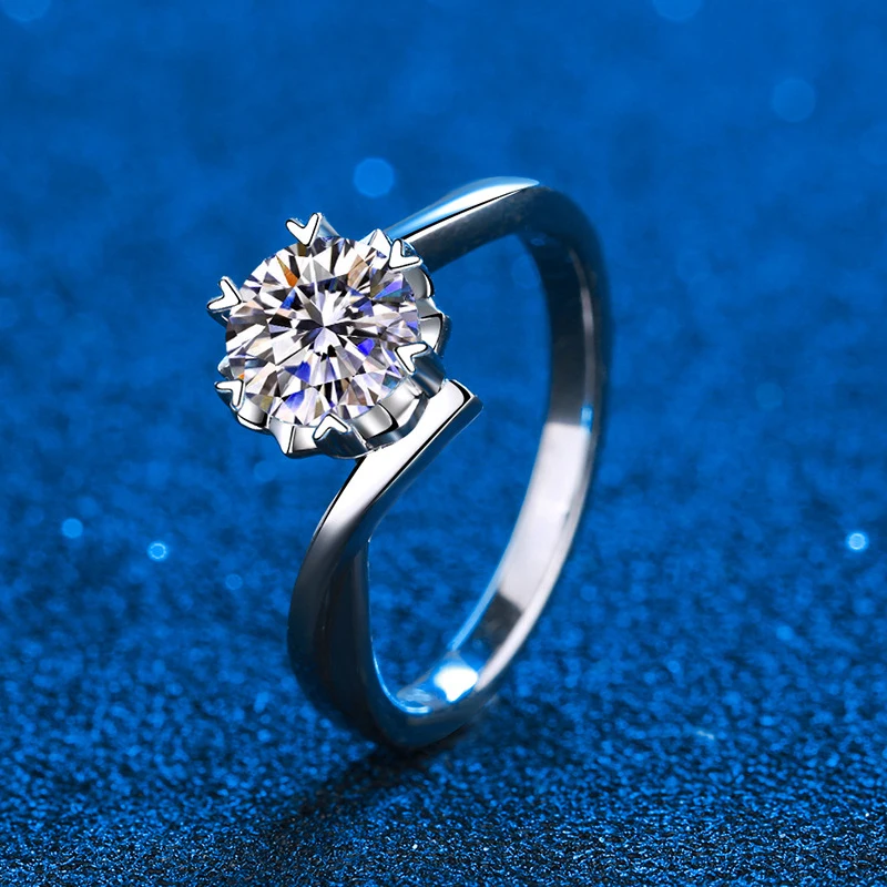 Камни VVS из муассанита проходят половину свадебного кольца для женщин. Камни сияют, как настоящие бриллианты. И только настоящий Муассанит могут пройти Алмазный тест.