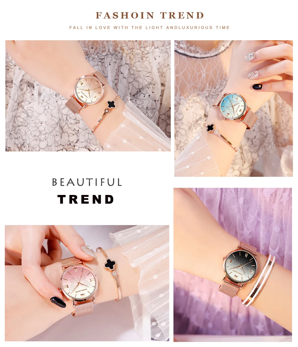 Часы женские водонепроницаемые с ремешком из нержавеющей стали, удо...