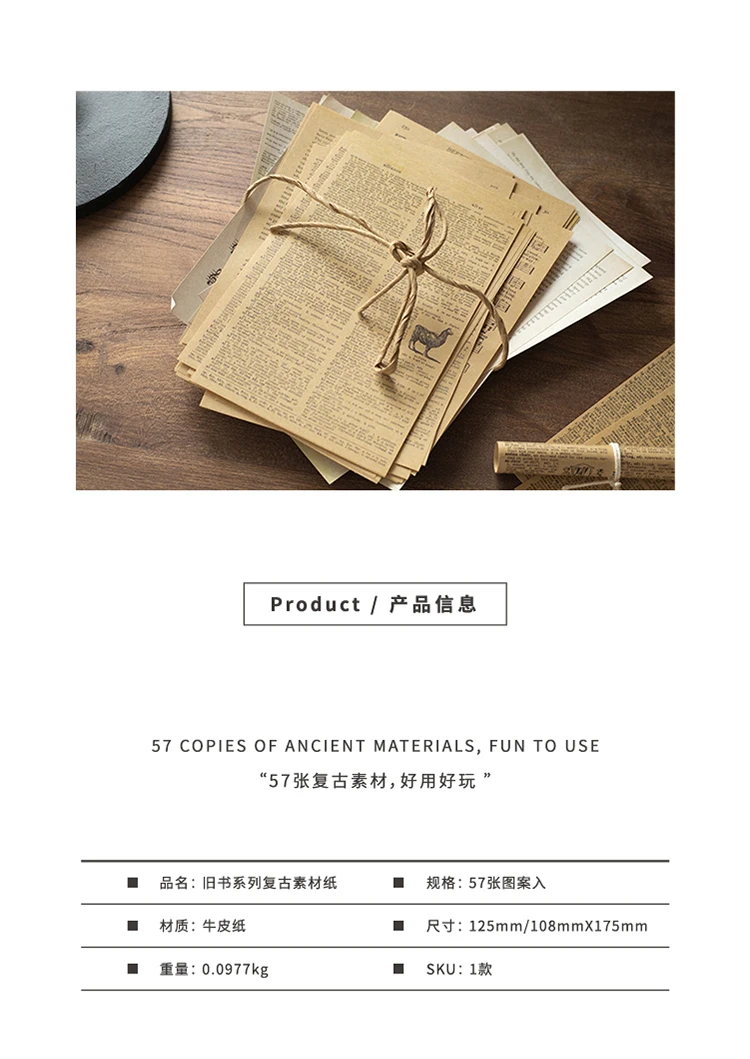 57 шт., старые книжные страницы, ручная бумага, дневник нежелательной еды, винтажная фотобумага