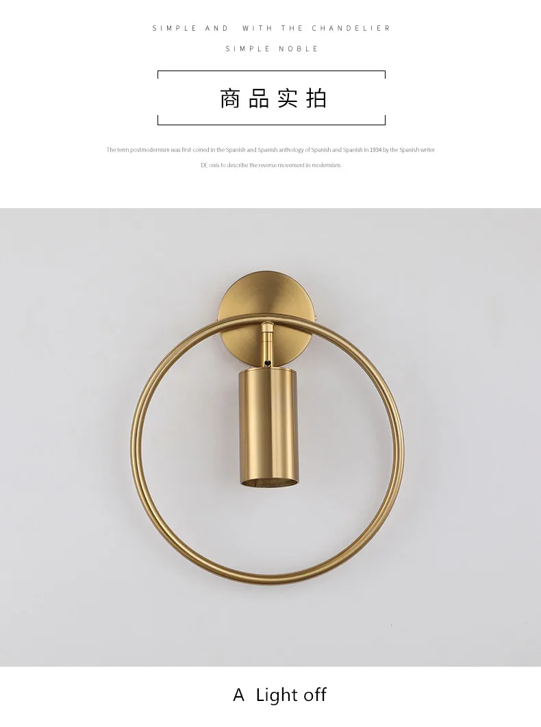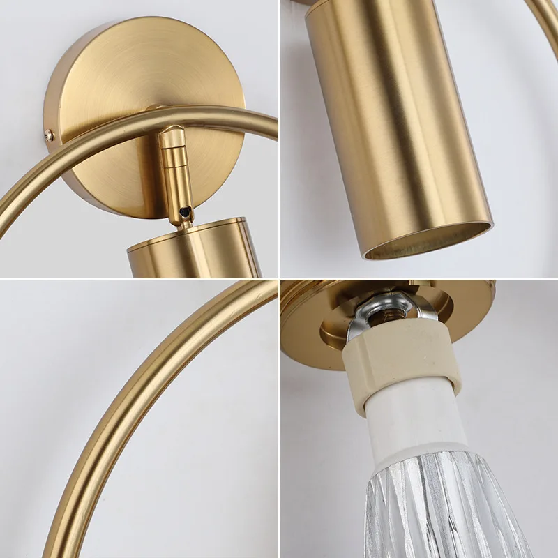 Роскошный прикроватный настенный светильник в скандинавском стиле, круглая золотистая лампа в стиле постмодерн, креативный светильник для гостиной, отеля, коридора, светильник для спальни