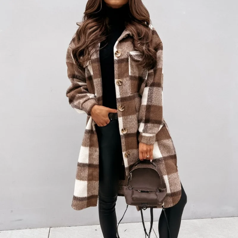 Женская клетчатая куртка в стиле оверсайз, тонкая длинная куртка с отложным воротником, в стиле ретро, зима 2021