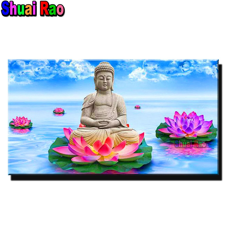 Алмазная вышивка с Буддой и лотосом, картина 5d сделай сам, полноразмерная, квадратная, круглая, 3d Мозаика из страз, морской пейзаж