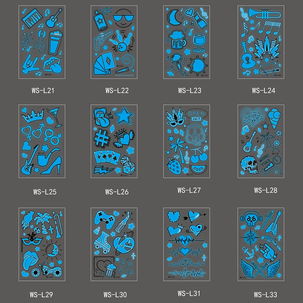 Новый синий светящийся стикер для тату, бар, музыкальный фестиваль, карнавал, вечерние, сексуальные, флуоресцентные, музыкальные, светящиеся, для девочек