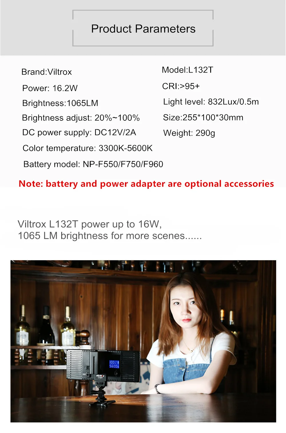 Viltrox L132T светодиодный светильник для видеосъемки ультра тонкий ЖК-дисплей двухцветный Диммируемый DSLR студийный светильник Панель лампы для камеры макияж Vlog