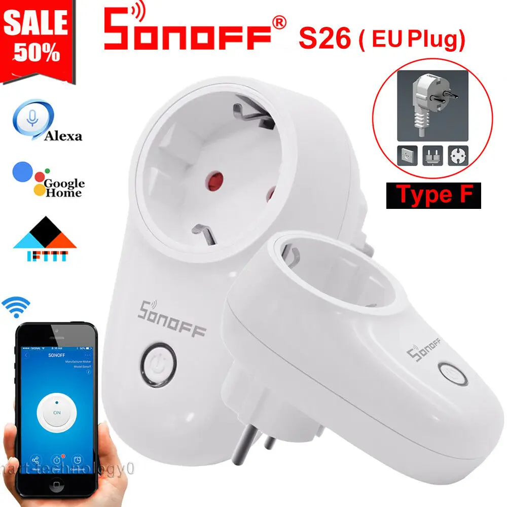 Умная розетка Sonoff S26 с Wi-Fi, Беспроводные Розетки для умного дома, переключатель, работает с Alexa Google Assistant IFTTT