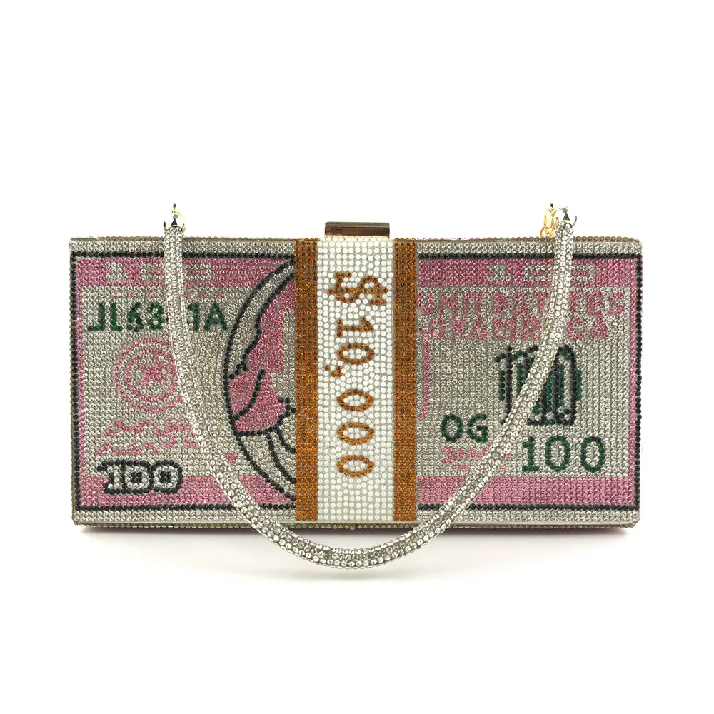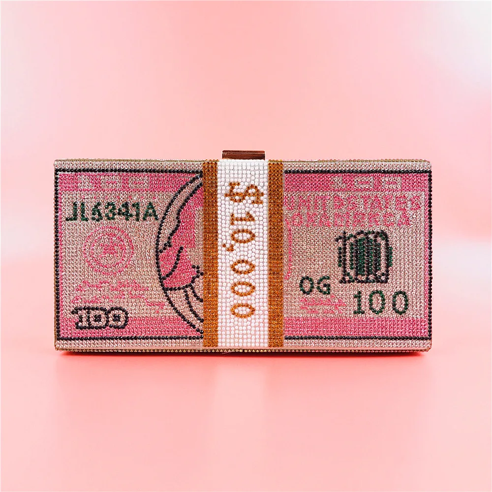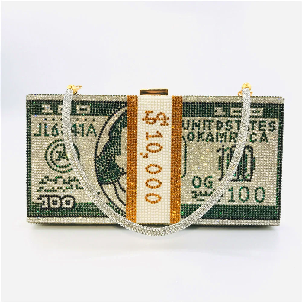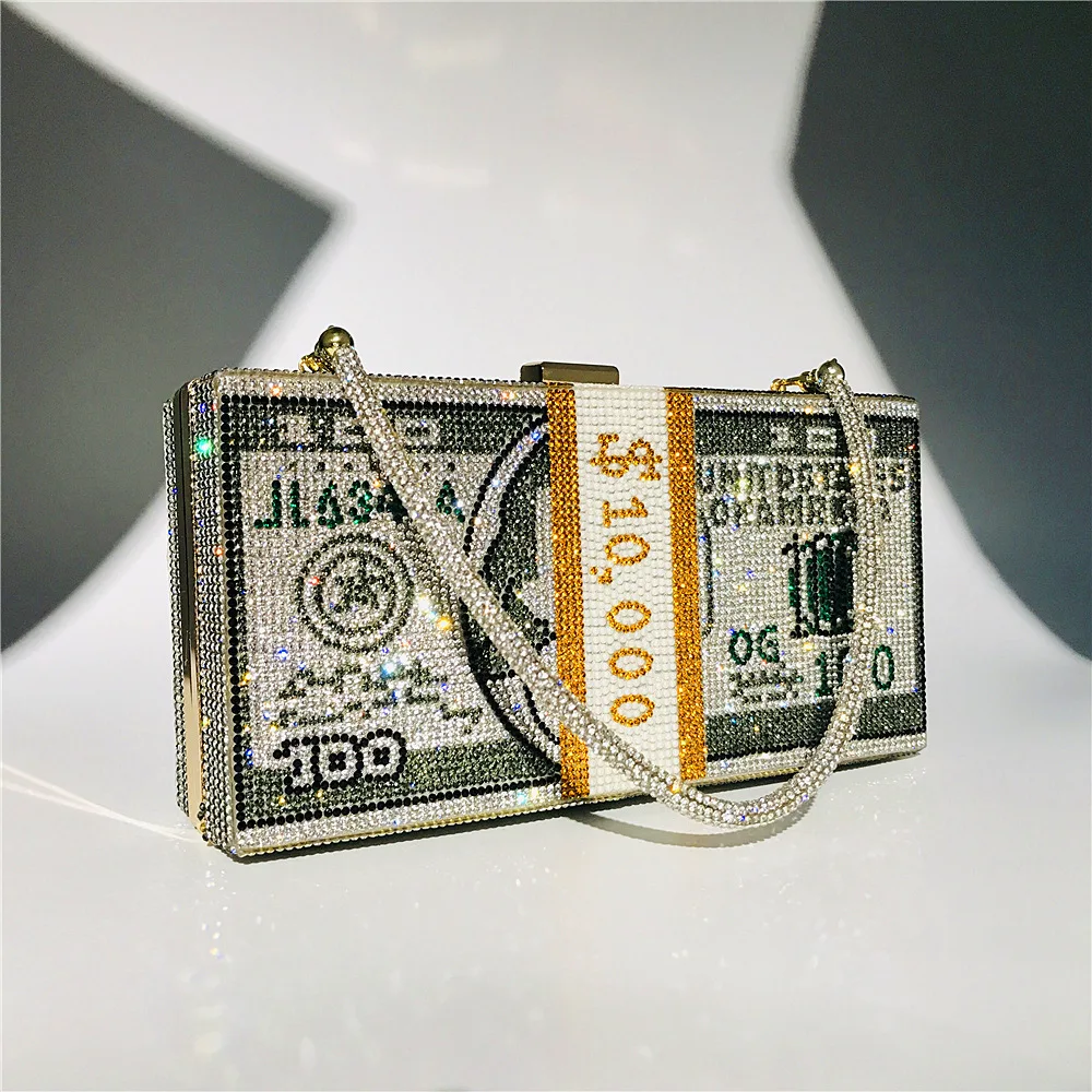 Деньги клатч сумочка со стразами 10000 долларов стека денежных сред...