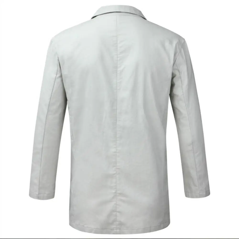 Мужской осенний однотонный блейзер с длинными рукавами и карманами из хлопка и льна