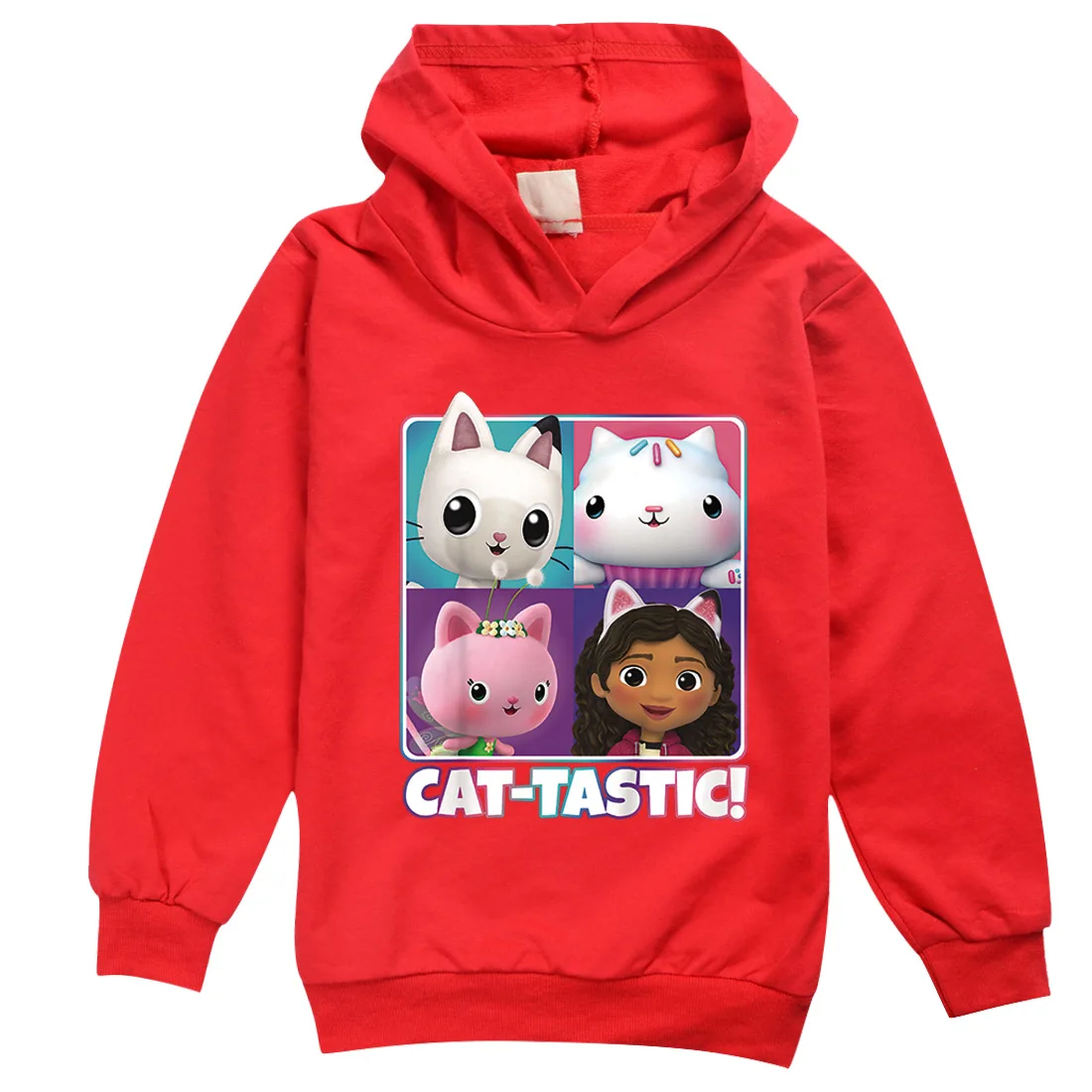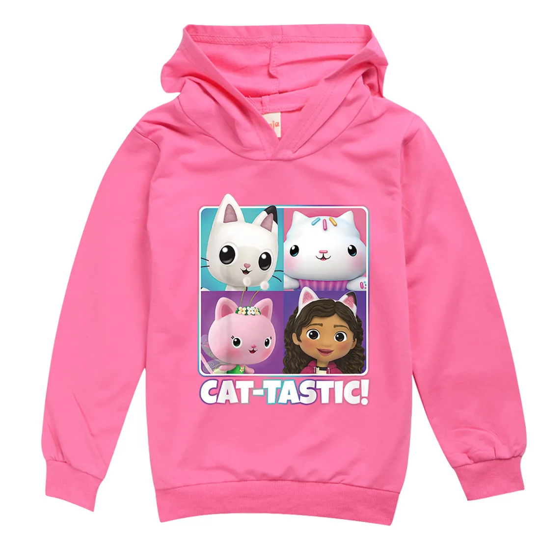Детская кошачья толстовка с капюшоном, с мультяшным принтом